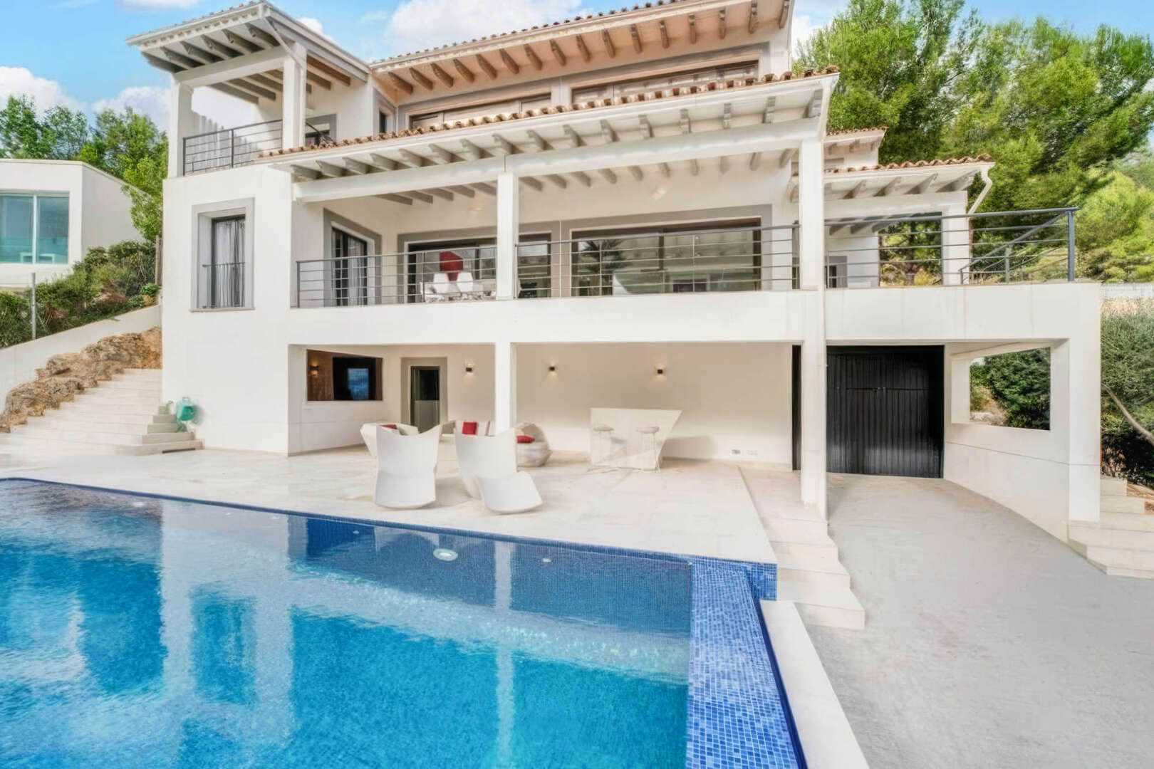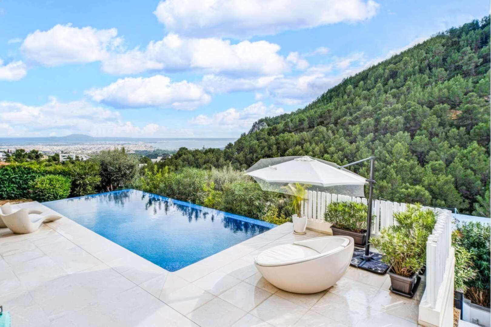 The luxury designer villa, with a vacation rental license, has sensational views of the bay of Palma and offers everything your heart desires.