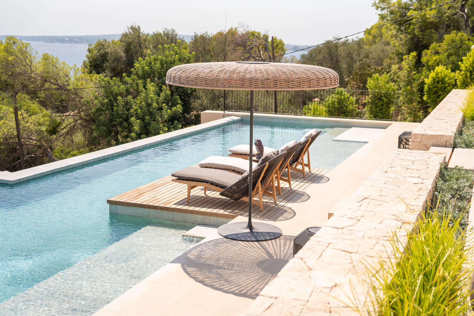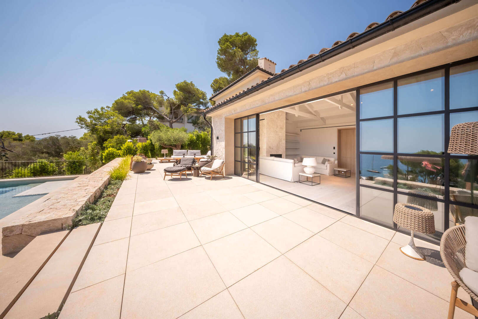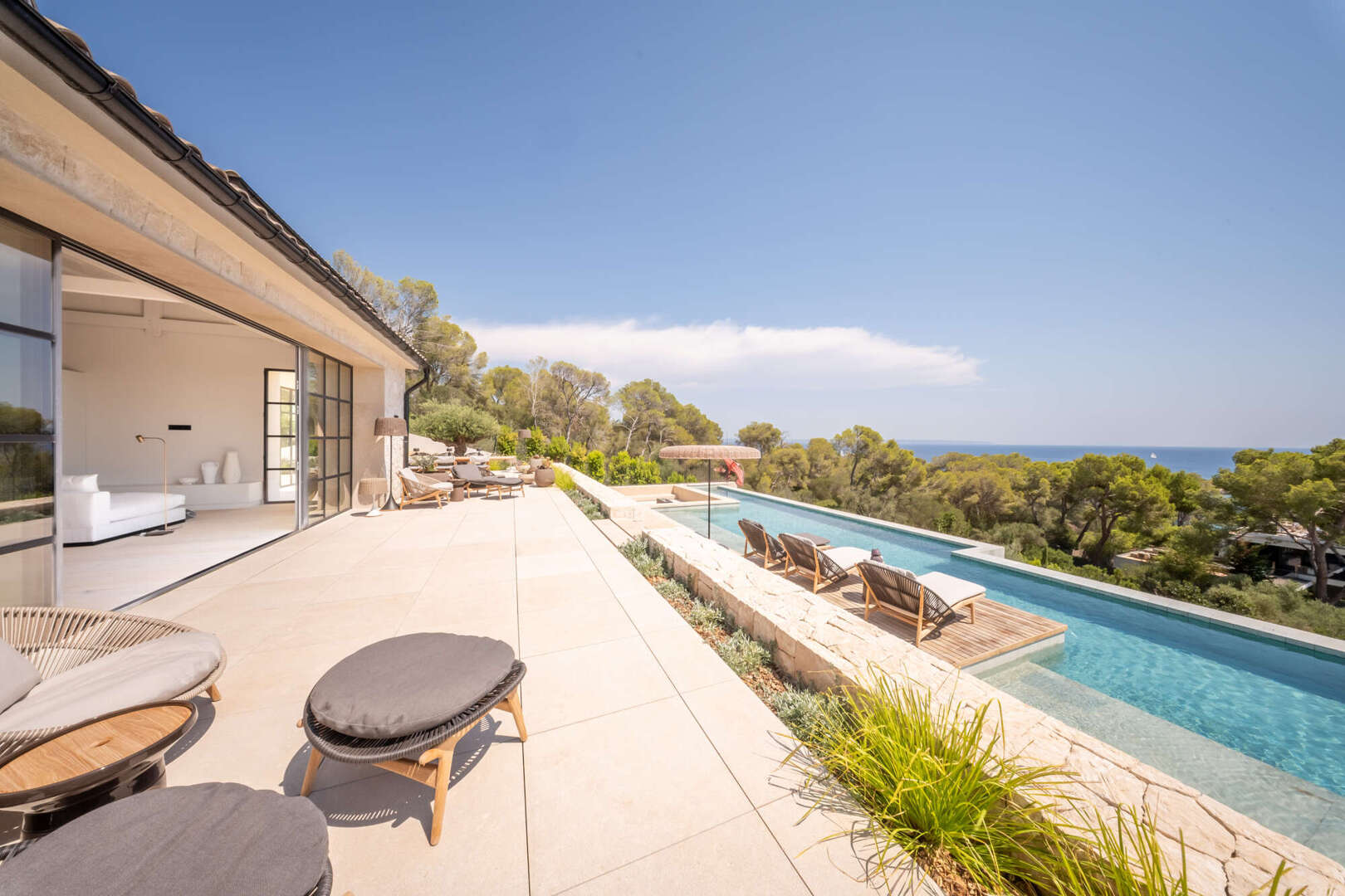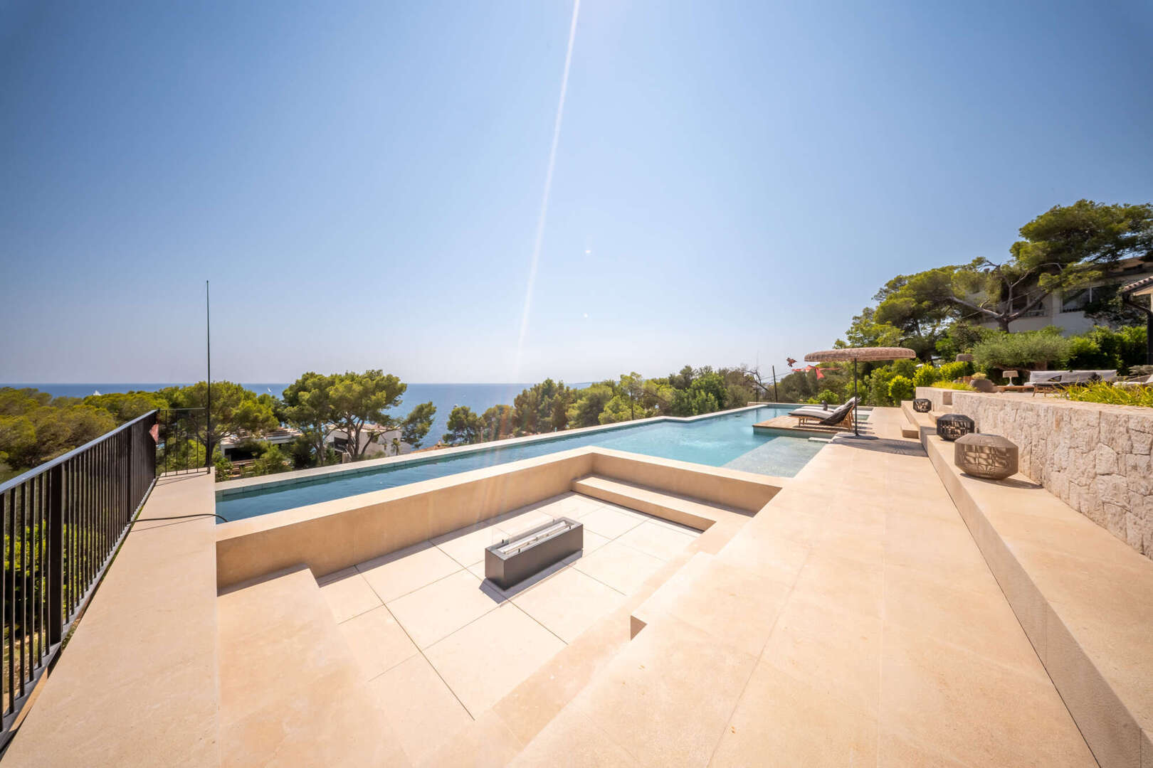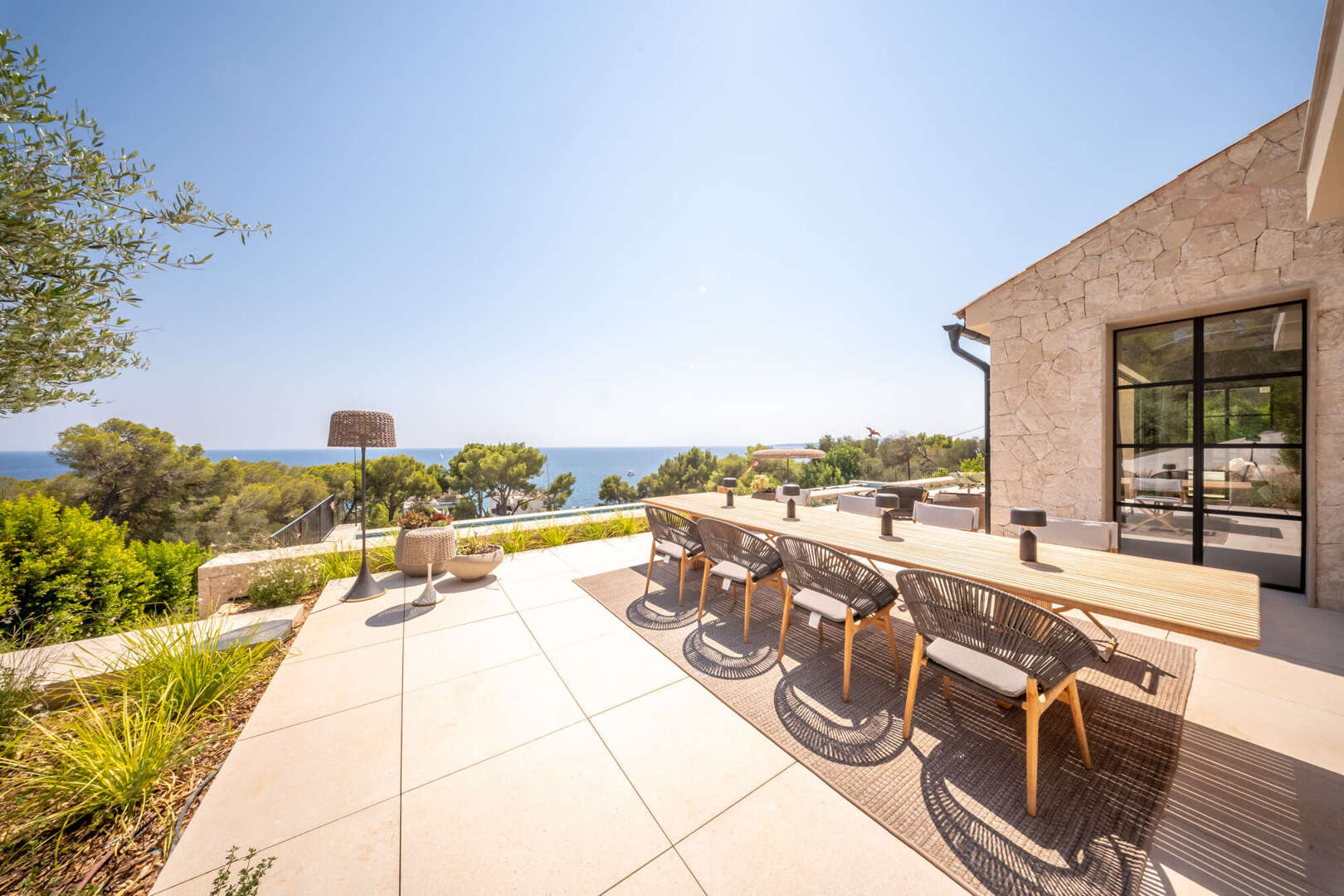 This exclusive villa will be completed around 2024 in Bendinat, one of the most sought-after residential areas in Mallorca. It is located directly by the sea and borders the beautiful park of Bendinat. From here you can enjoy breathtaking views of Cabrera and the island of Illetas. The Mediterranean flair of the villa is complemented by modern elements and offers enough space for a large family or guests in a total of six bedrooms and six bathrooms. The cozy fireplace in the living room creates a pleasant atmosphere on cooler evenings. Three terraces offer you the opportunity to enjoy the sun and the view of the sea. The relaxation area and the solarium with pool invite you to linger and relax. The underground garage offers space for eight vehicles and two further garage spaces are located on the upper floor. This villa is a dream property for discerning clients who want to enjoy Mediterranean life to the full.
