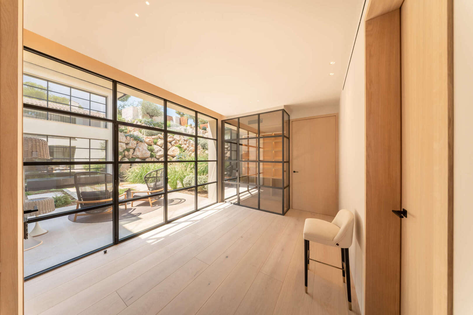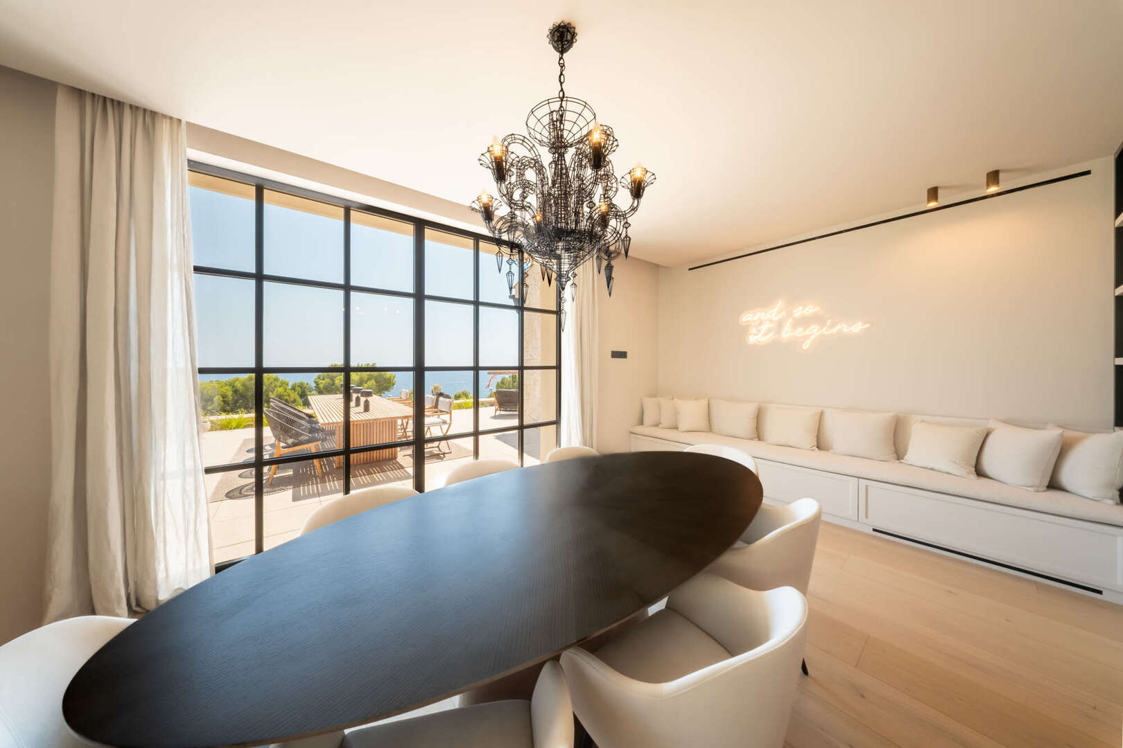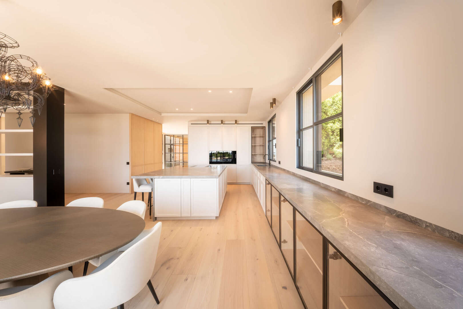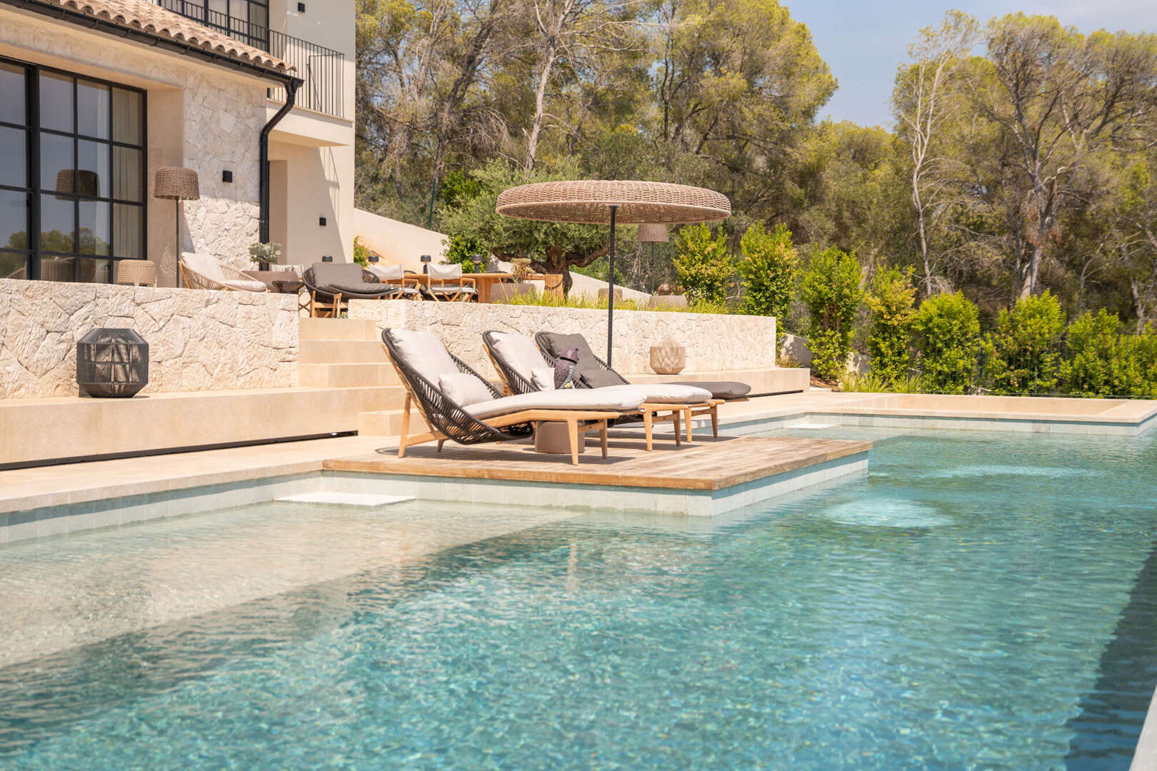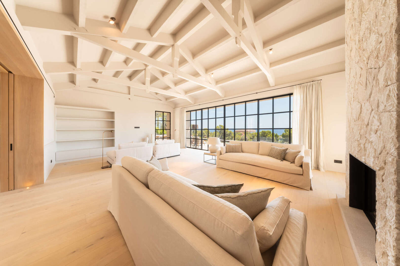 This exclusive villa will be completed around 2024 in Bendinat, one of the most sought-after residential areas in Mallorca. It is located directly by the sea and borders the beautiful park of Bendinat. From here you can enjoy breathtaking views of Cabrera and the island of Illetas. The Mediterranean flair of the villa is complemented by modern elements and offers enough space for a large family or guests in a total of six bedrooms and six bathrooms. The cozy fireplace in the living room creates a pleasant atmosphere on cooler evenings. Three terraces offer you the opportunity to enjoy the sun and the view of the sea. The relaxation area and the solarium with pool invite you to linger and relax. The underground garage offers space for eight vehicles and two further garage spaces are located on the upper floor. This villa is a dream property for discerning clients who want to enjoy Mediterranean life to the full.