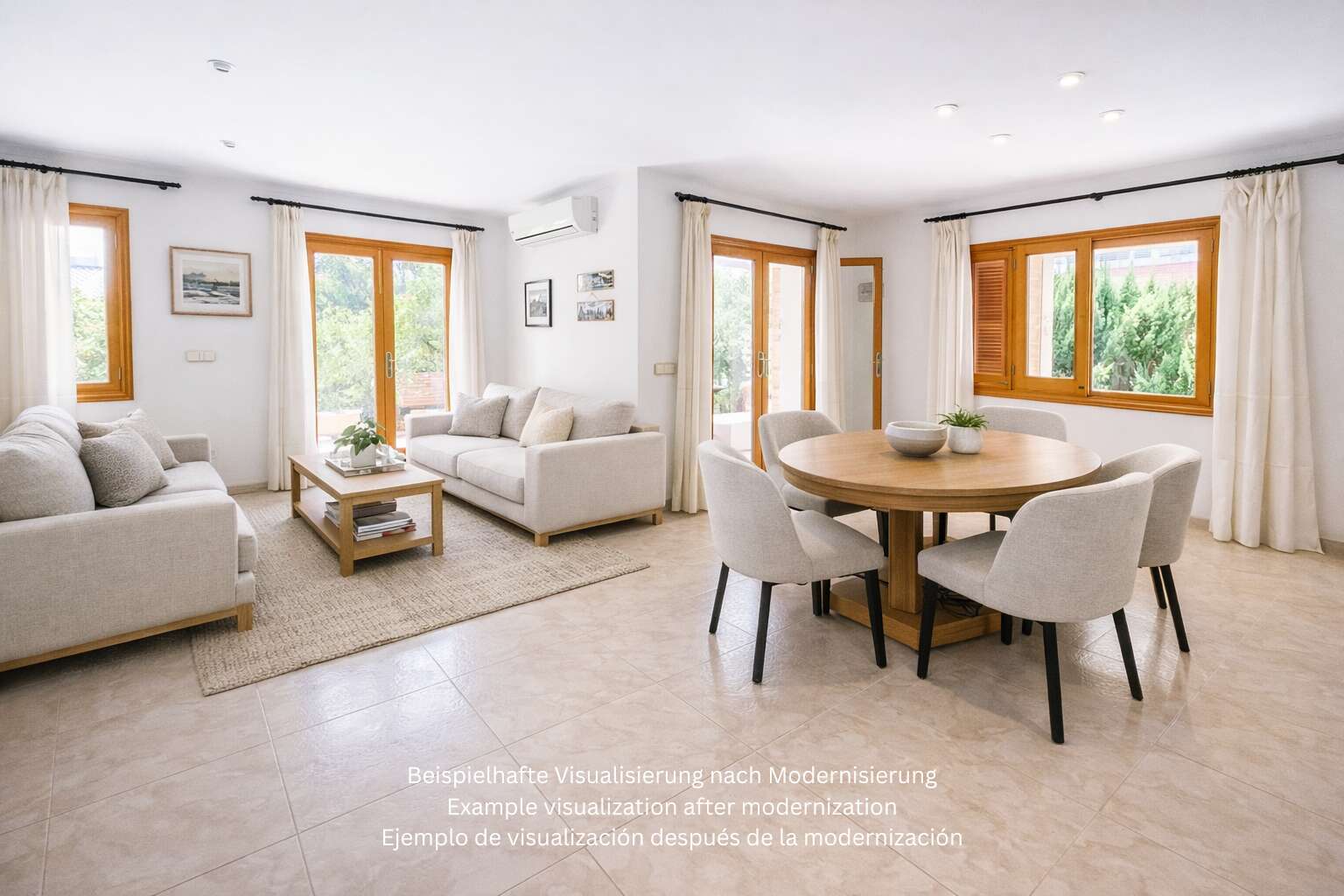 This well-kept, Mediterranean chalet is located in Ca'n Picafort - in the sought-after Son Bauló district - and offers a rare combination of solid building fabric, spacious areas and clear potential for value appreciation. With approx. 390 m² of living space and a plot of around 1,000 m², the property opens up a wide range of potential uses - ideal as a spacious family home, multi-generational solution or as an interesting investment.