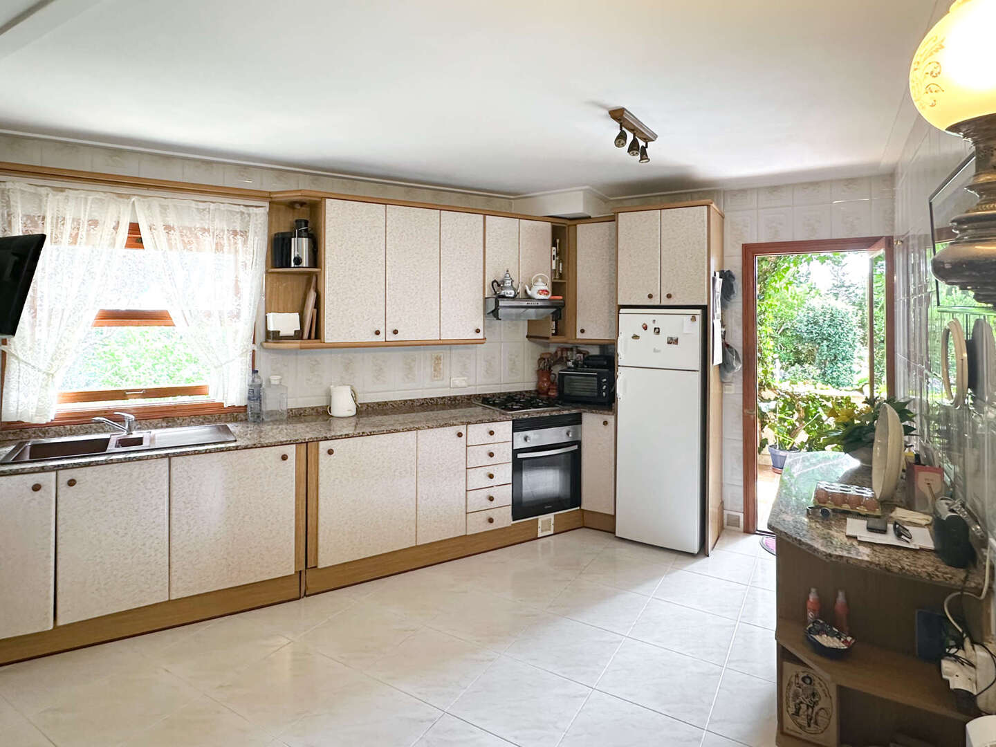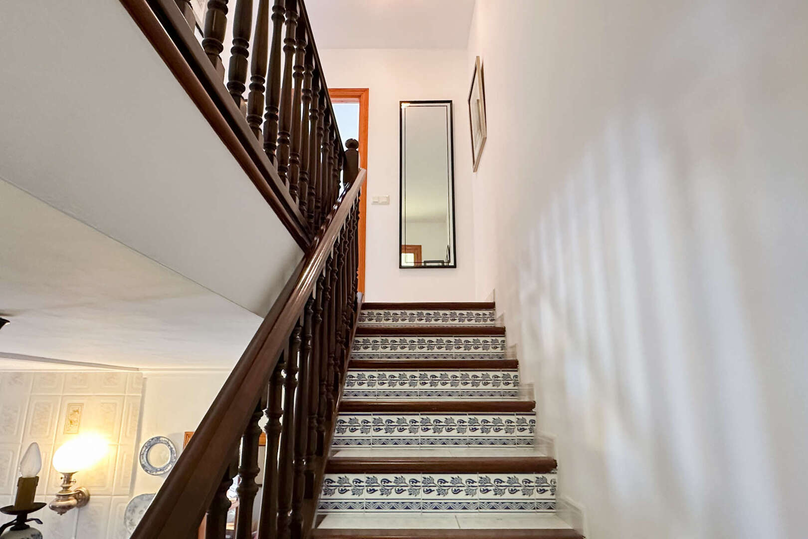 On the upper floor, the staircase leads to a hallway that leads to two further spacious bedrooms and a modern bathroom. The bedrooms offer a beautiful view of the garden and the surrounding nature.