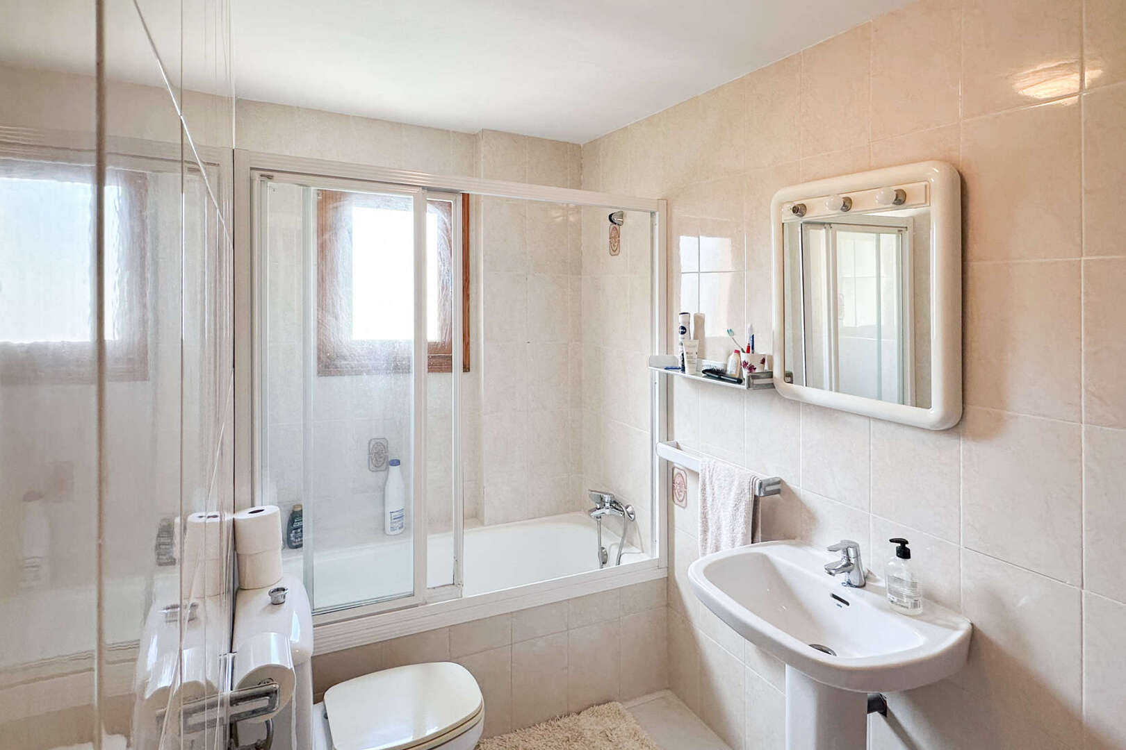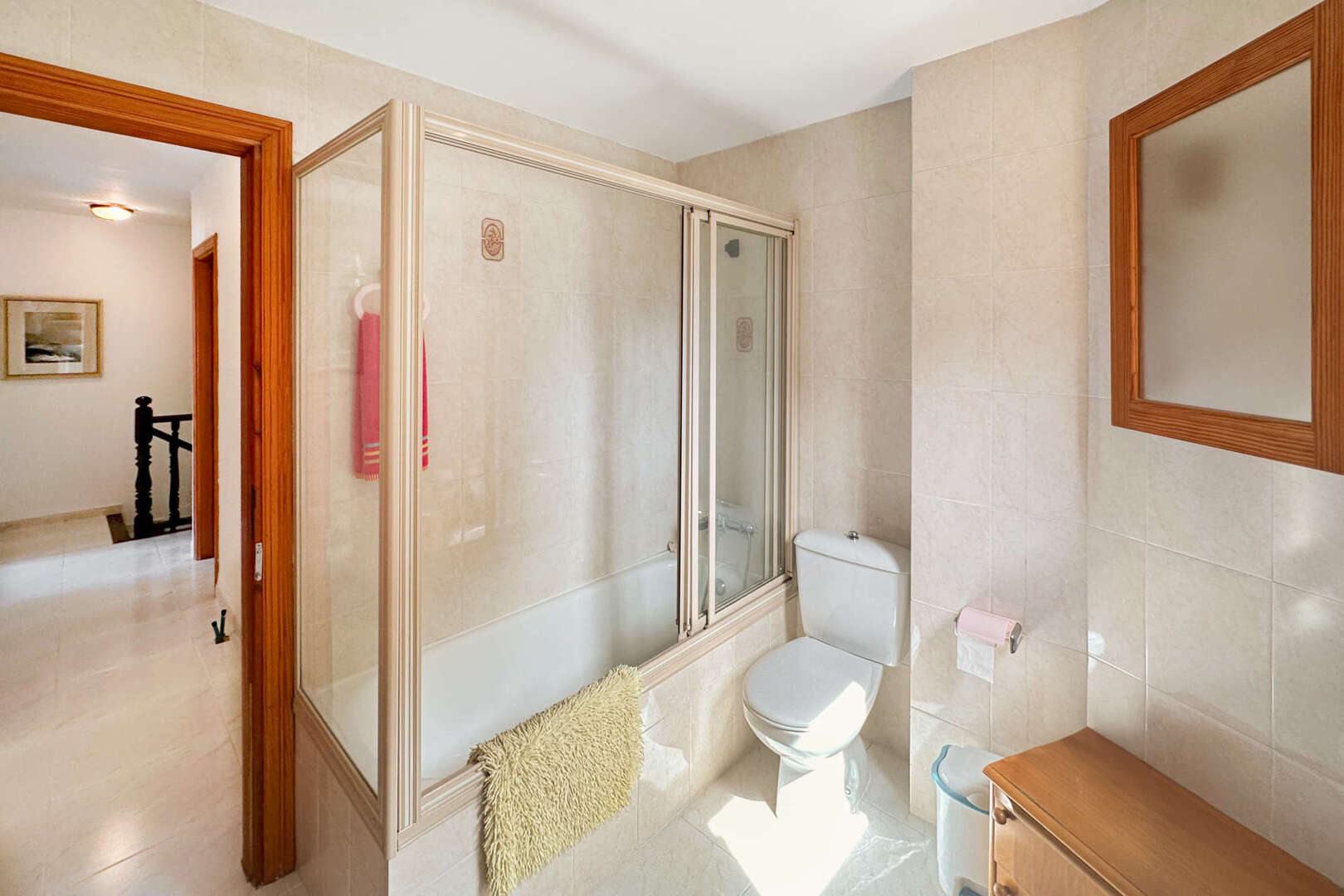 The spacious entrance area is located on the first floor, from where a staircase leads to the upper floor. Here there are two bright bedrooms, a guest WC and the inviting living/dining room with an open fireplace, which creates a cozy atmosphere. The adjoining, fully equipped fitted kitchen offers everything you need for your daily needs. The living area leads directly onto the covered terrace, which opens onto the lovingly landscaped garden. Here, the pool invites you to relax and swim on hot days. Although there is no garage, there are plenty of parking spaces outside.