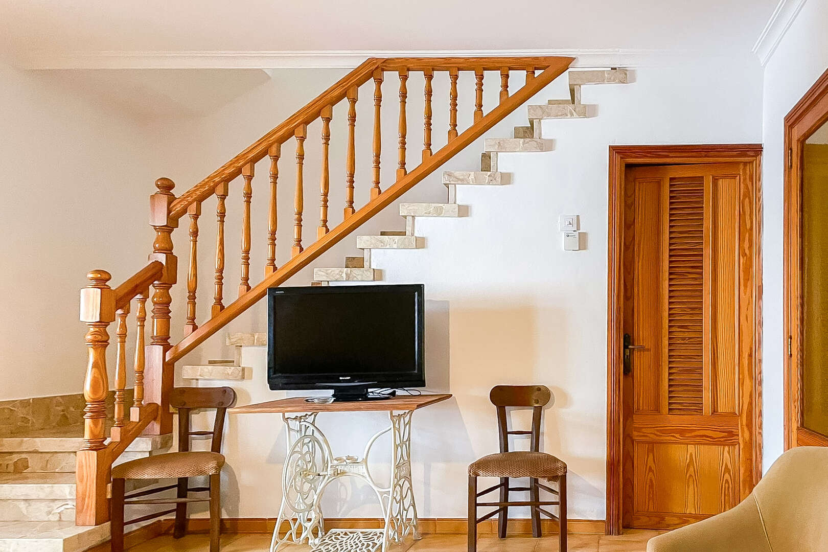 The house has a total of four spacious bedrooms, which can be used for families, guests or as a study. Two fully equipped bathrooms and a separate guest WC offer plenty of space and comfort. The spacious living area impresses with its Mediterranean style, which creates a particularly cozy atmosphere with traditional elements and a fireplace. The existing furnishings make the house ready for immediate occupancy.