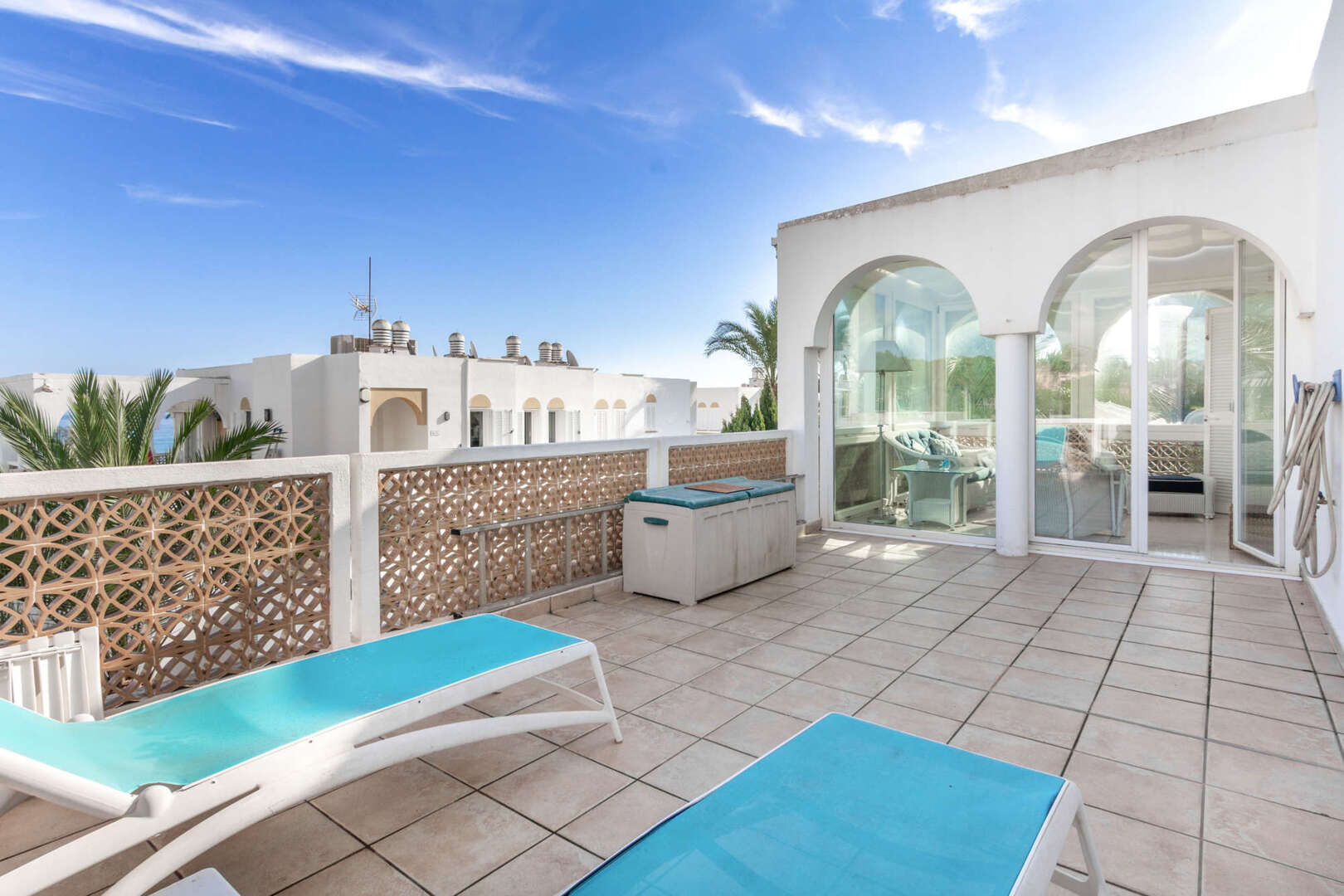 The penthouse is located in a gated community that offers both privacy and comfort. The residential complex has extensive gardens with palm trees and green areas, as well as a spacious pool. A special highlight is the private access to the beach, which makes this place a unique retreat.