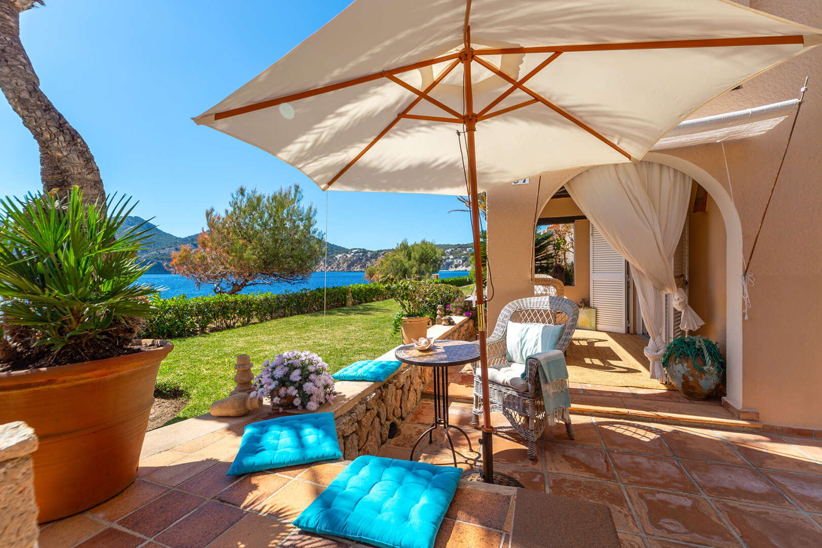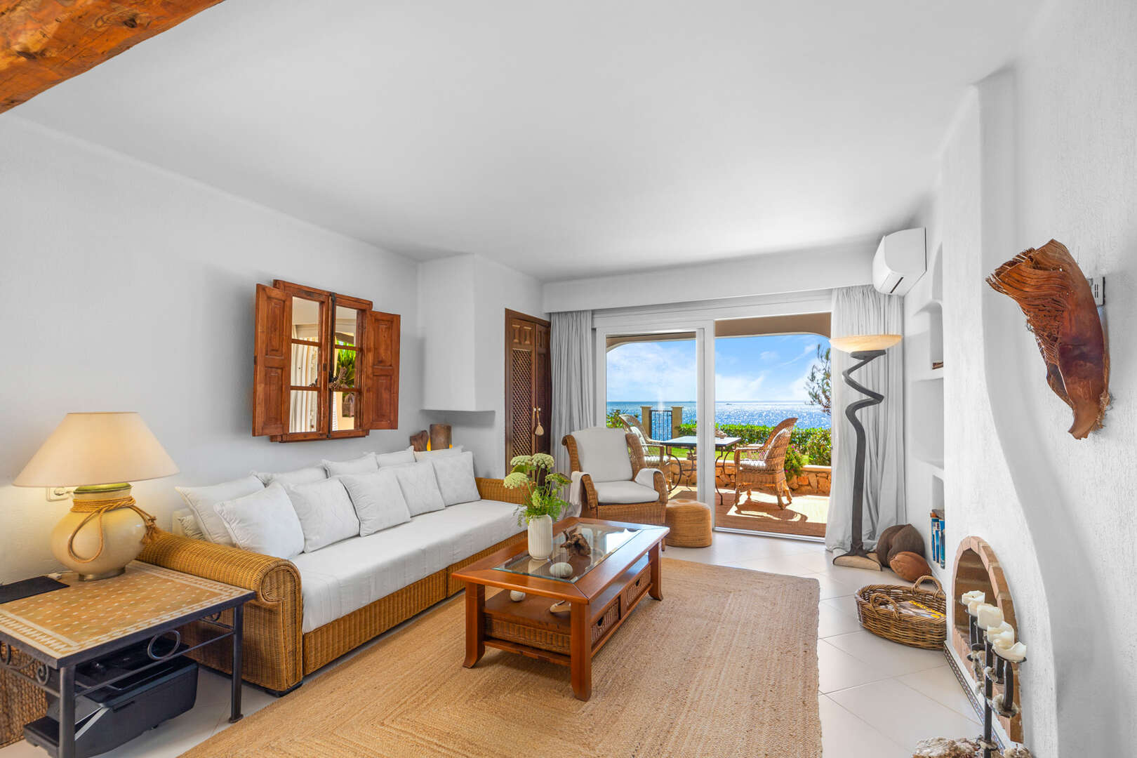 This charming first floor apartment is located in the exclusive coastal town of Camp de Mar in a well-kept Mediterranean residential complex. The property impresses with its privileged location in the first sea line with direct access to the crystal clear waters of the Mediterranean Sea.