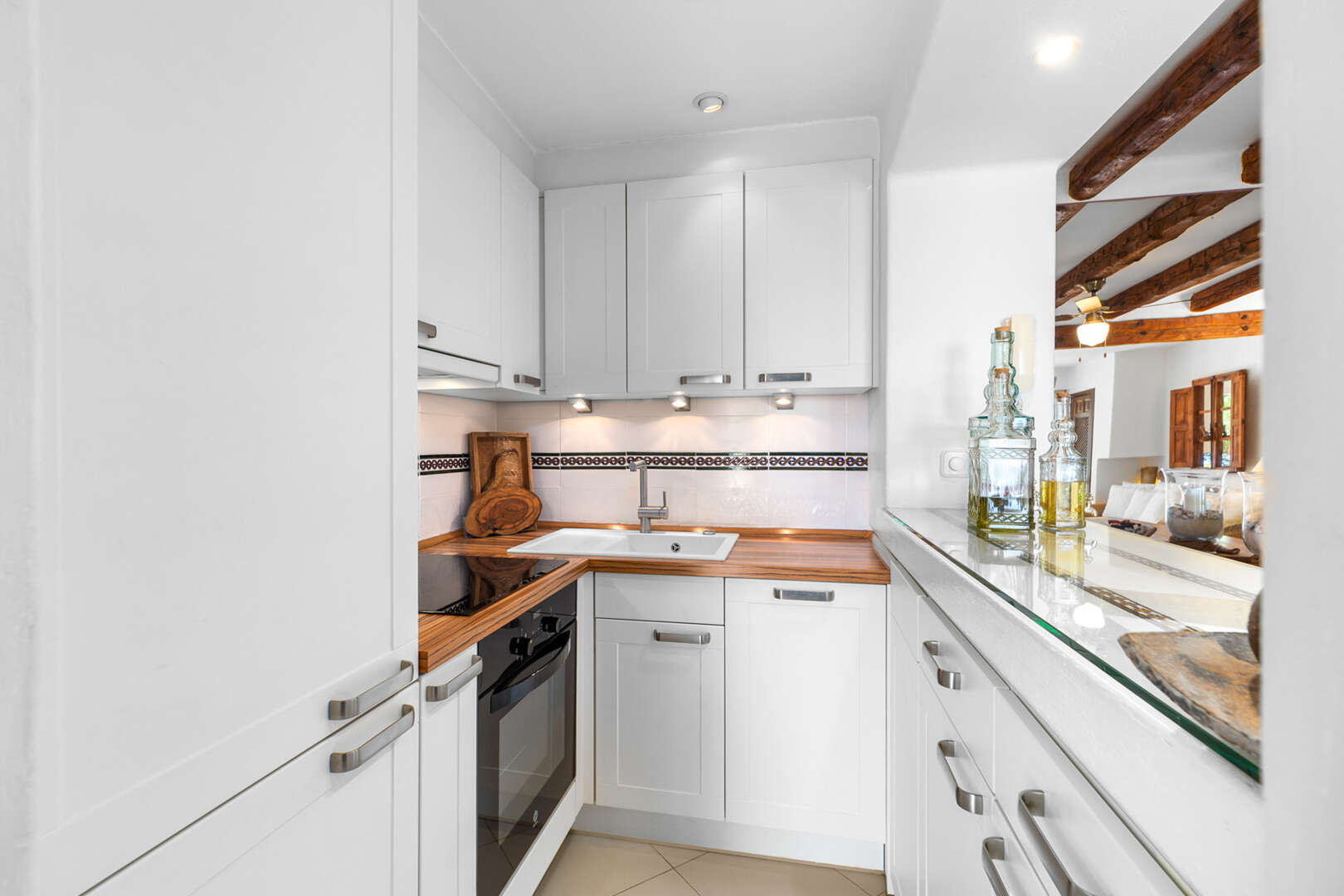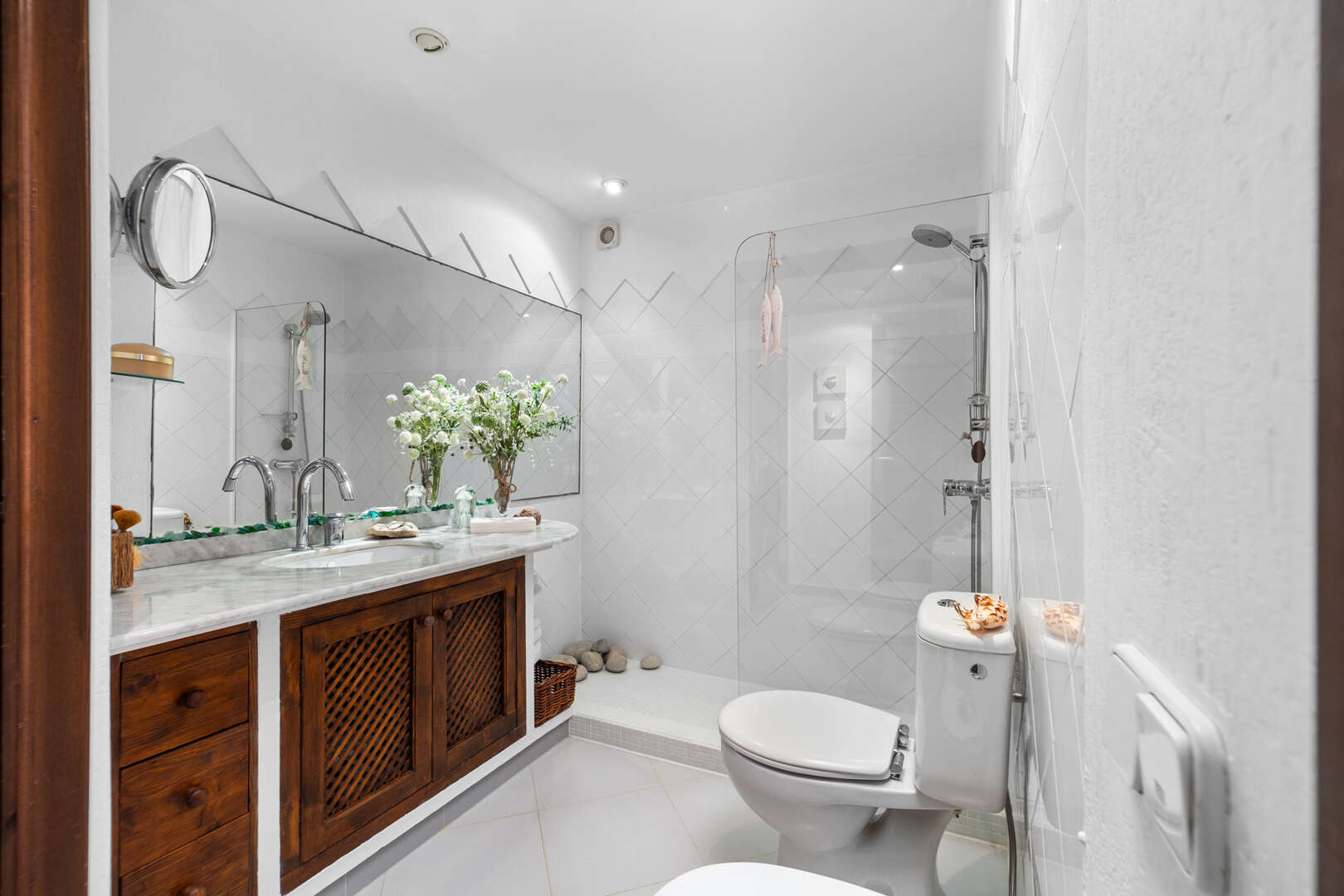 The apartment has a spacious bedroom and offers a pleasant living atmosphere thanks to its well thought-out room layout. A particular highlight is the direct access to the garden, which creates a seamless connection between the indoor and outdoor areas. The covered terrace invites you to relax and enjoy the mild Mallorcan evenings, while the spacious patio offers additional space for outdoor activities.