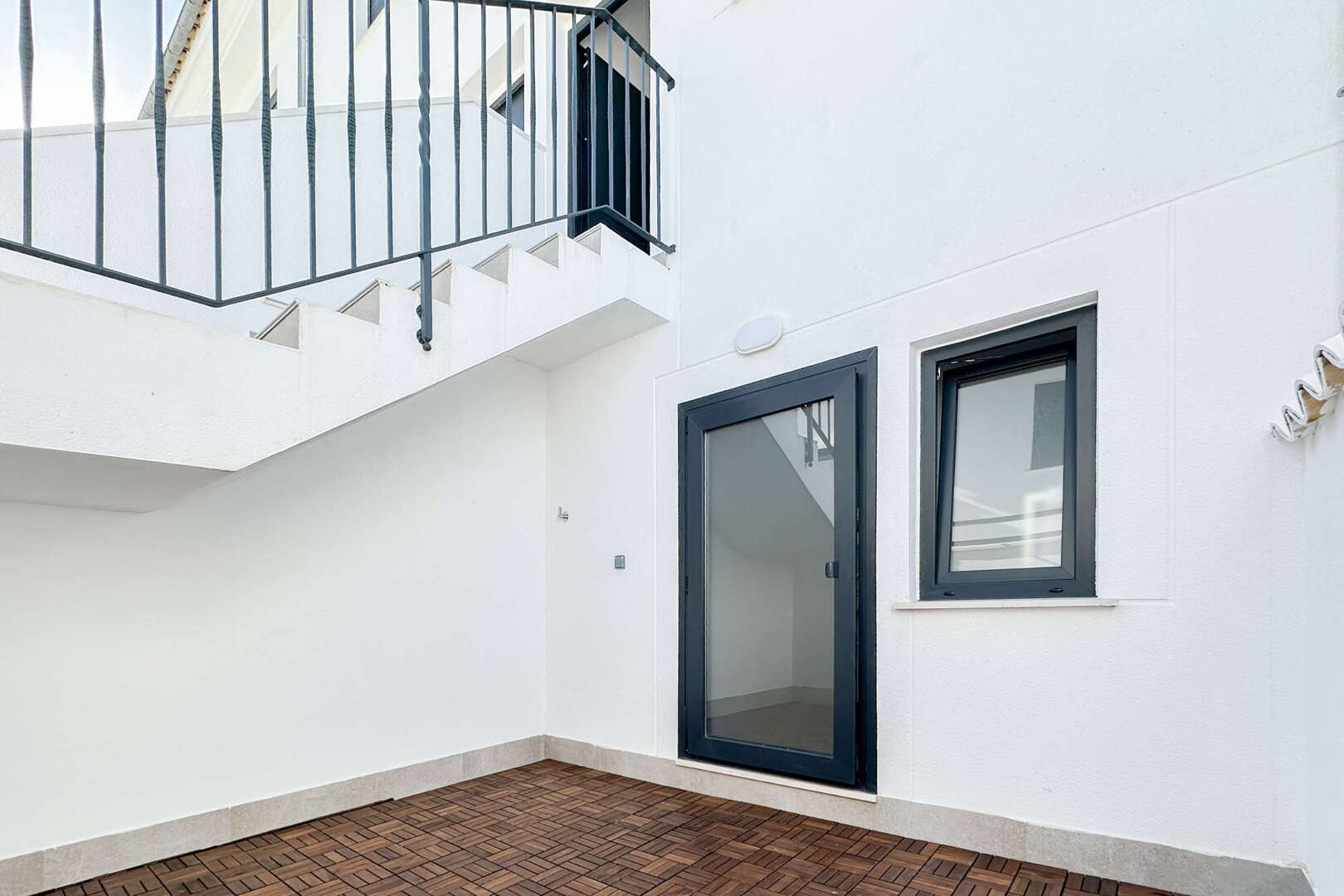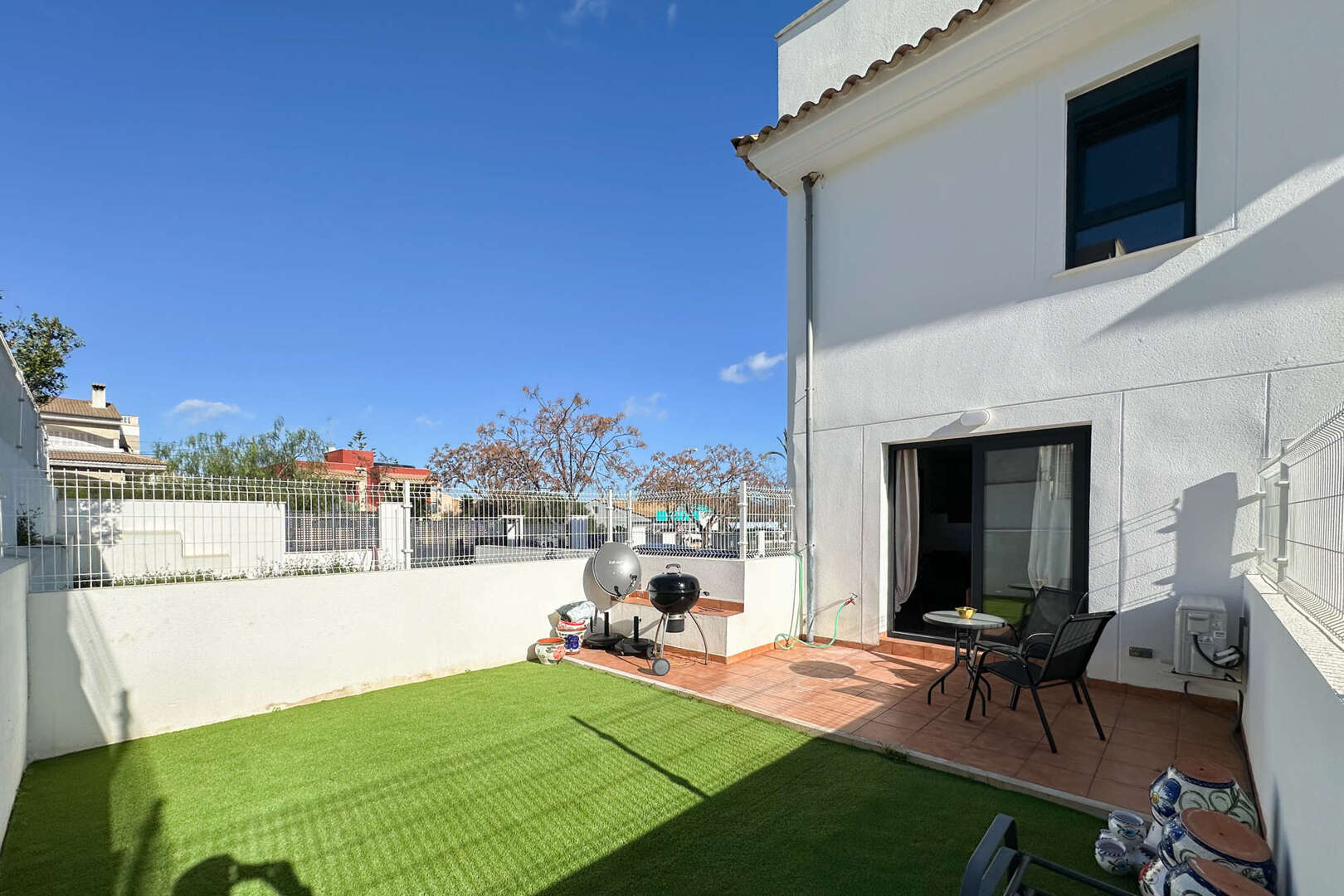 On the lower floor you can set up a utility room or you also have the option of creating another bedroom here, as there is also a bright bathroom with shower. The utility room could then be relocated outside with connections and placed on its own partially covered patio.