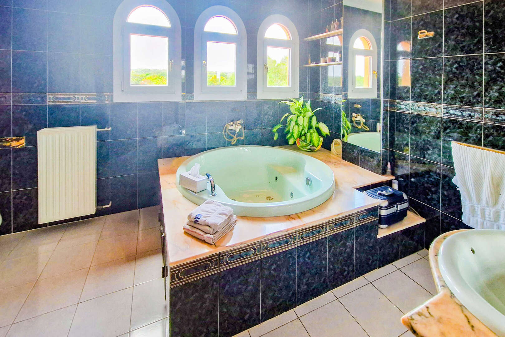 Upon entering the villa, you will be greeted by the elegant marble floors and the open-plan layout, which offer a multitude of possible uses for your future home. The large windows made of high-quality wood provide pleasant natural light, which bathes the rooms in an inviting atmosphere.