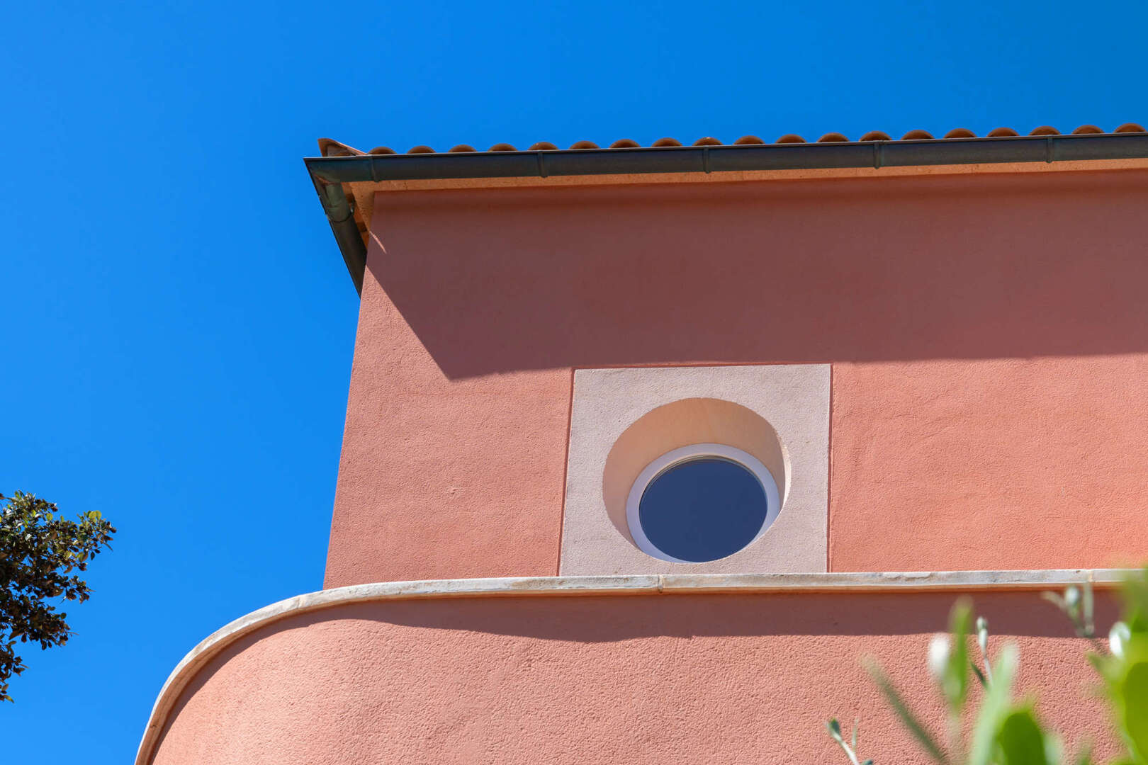 The villa has a separate guest area on the first floor, which is equipped with its own en-suite bathroom and a small living area - ideal for guests or family members. The main entrance is on the second floor, where there are two bedrooms, two bathrooms and a study or children's room. The master bedroom offers direct access to a covered terrace with turquoise sea views, perfect for relaxing evenings. On the second floor is the open-plan living and dining area with modern kitchen, which gives access to a sunny terrace. From here you can enjoy spectacular views over the sea and the nearby nature reserve.