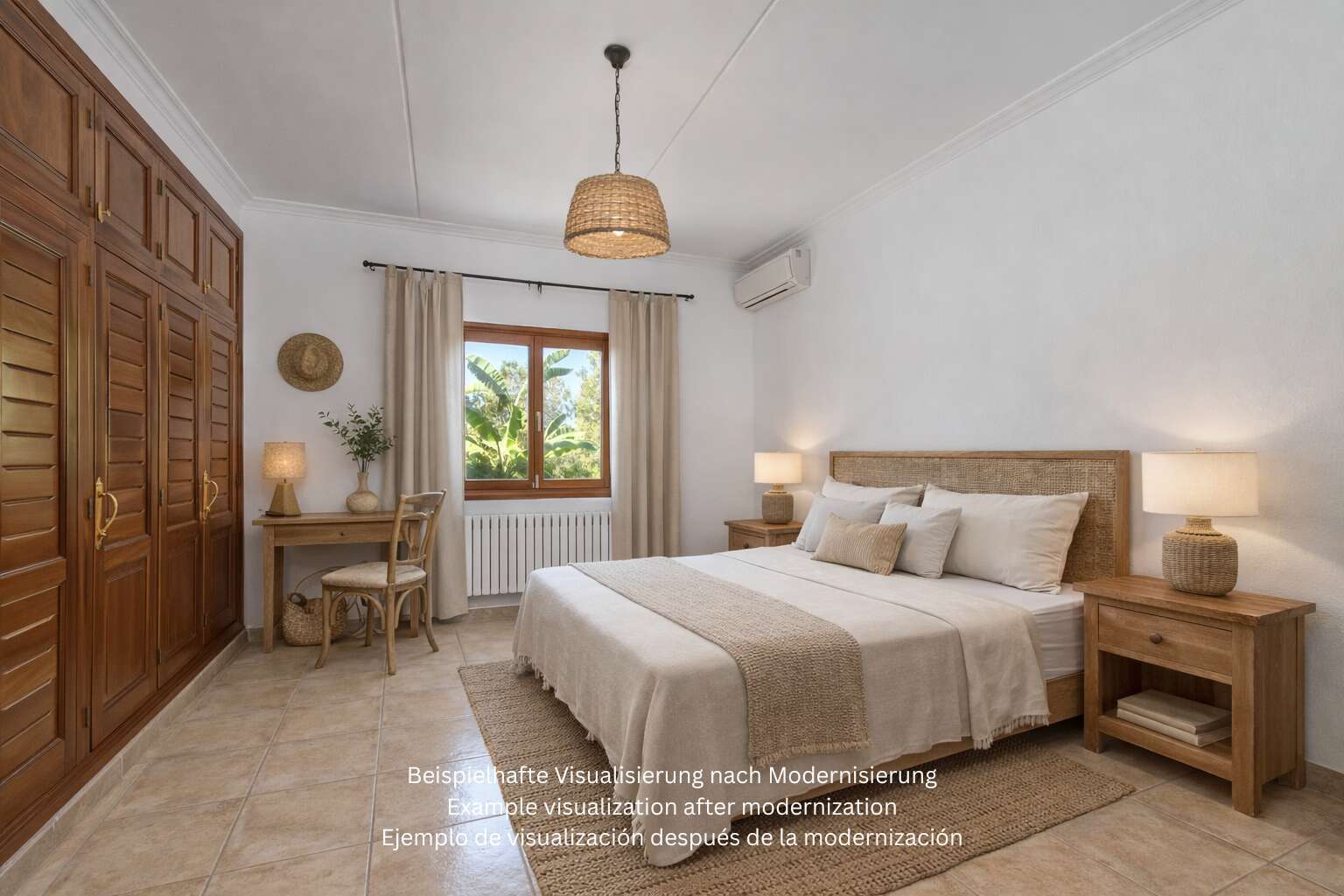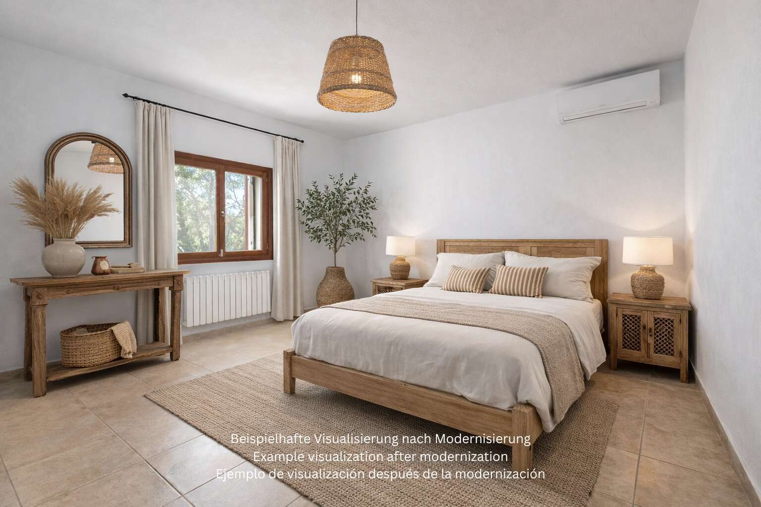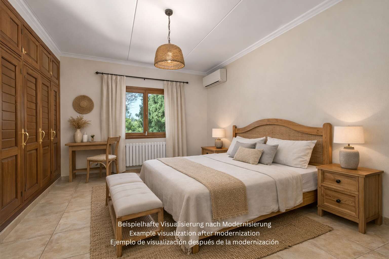 The spacious master bedroom with en-suite bathroom forms the exclusive retreat of this property. Two further double bedrooms share a tastefully designed bathroom. A further bedroom with its own en suite bathroom is available for guests. A highlight is the spacious studio on the upper floor with breathtaking views over the Mallorcan countryside as far as the bay of Alcudia.
