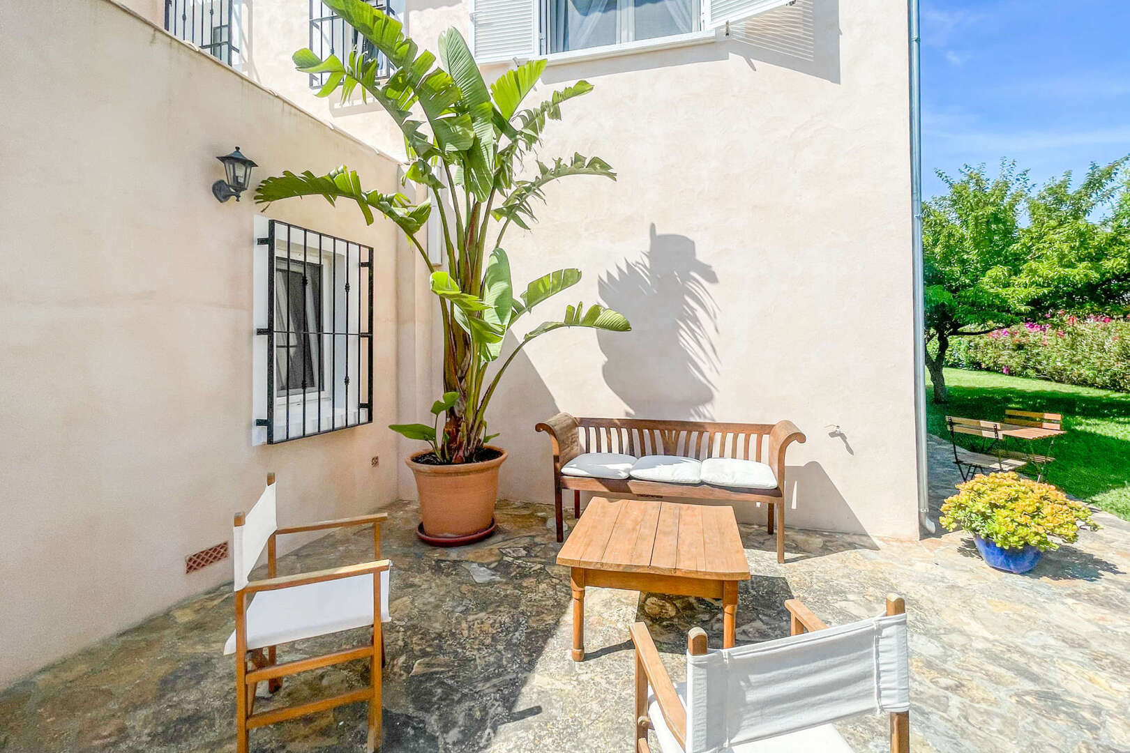 Surrounded by lush Mediterranean vegetation and just 1.5 km from the crystal-clear waters and endless sandy beaches of Playa de Muro, you will find this exceptional finca. Originally built in the 1970s, it was completely modernized and extended in 2015 with a great sense of style and comfort. Noble natural stone tiles, elegant marble and high-quality wooden details create a harmonious living ambience.