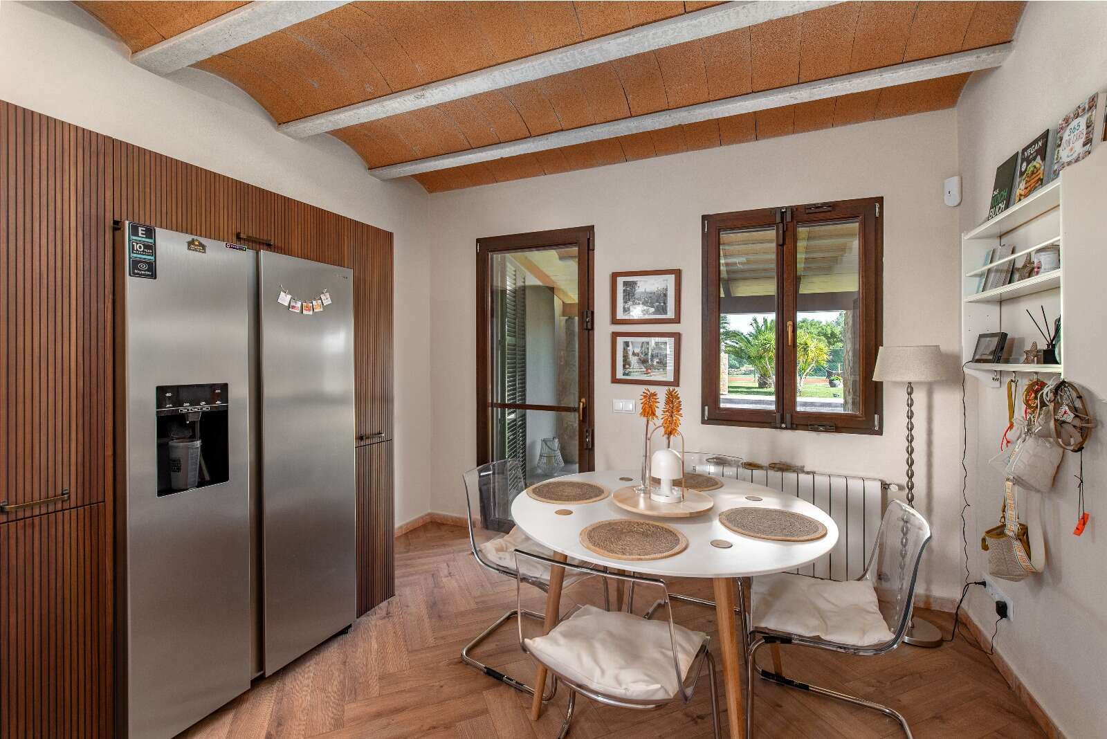 A stylishly designed living space of around 270 m² awaits you on an impressive plot of 7,023 m². The finca offers four spacious bedrooms and four elegant bathrooms, perfect for family, friends or guests. The light-flooded living area with direct access to the terrace and a cozy fireplace invites you to relax and creates a warm, inviting atmosphere at any time of year.