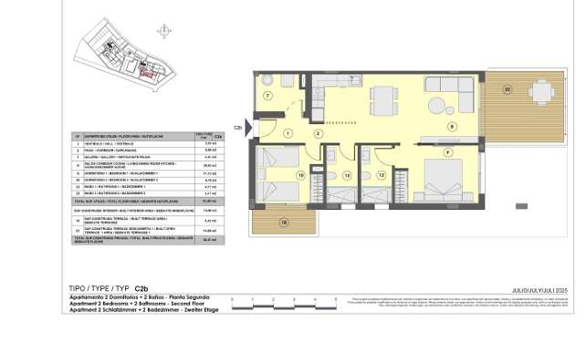 The light-flooded apartment has a spacious living and dining room, which conveys a pleasant feeling of space thanks to its open design. The open, modern fitted kitchen invites you to cook and linger. The apartment has two bedrooms and two elegant bathrooms with showers, underfloor heating and high-quality materials that ensure comfort and luxury.