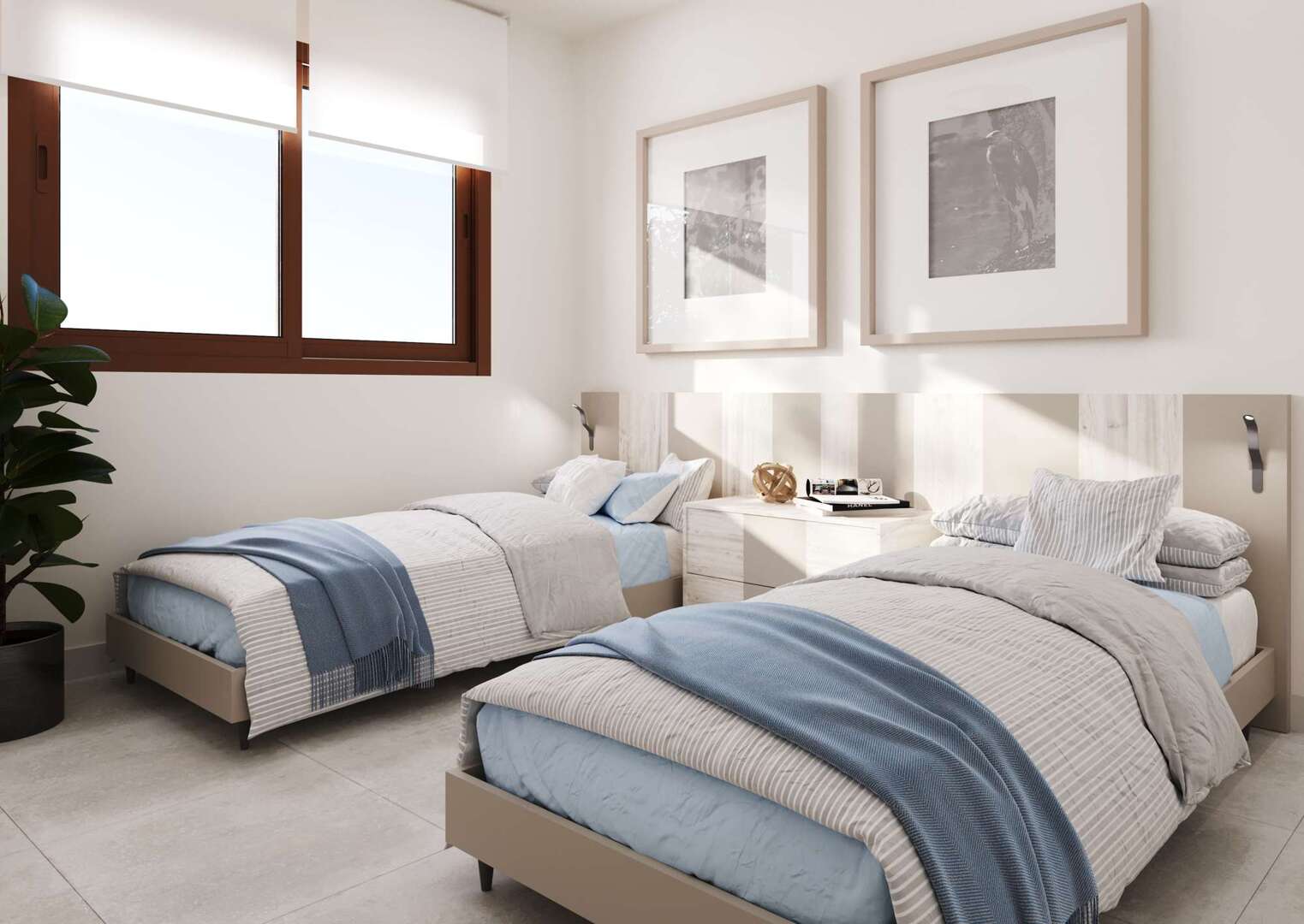 The light-flooded apartment has a spacious living and dining room, which conveys a pleasant feeling of space thanks to its open design. The open, modern fitted kitchen invites you to cook and linger. The apartment has two bedrooms and two elegant bathrooms with showers, underfloor heating and high-quality materials that ensure comfort and luxury.