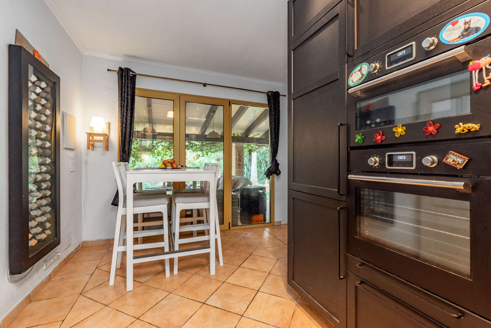 The main house (approx. 155 m²) extends over two floors and impresses with loving details such as an impressive stone façade and an 8 m high entrance area. On the first floor there is a spacious master bedroom with dressing room and en-suite bathroom, a stylish U-shaped kitchen with wonderful garden views, a cozy living room and a guest WC. The adjoining terrace with seating area invites you to relax.