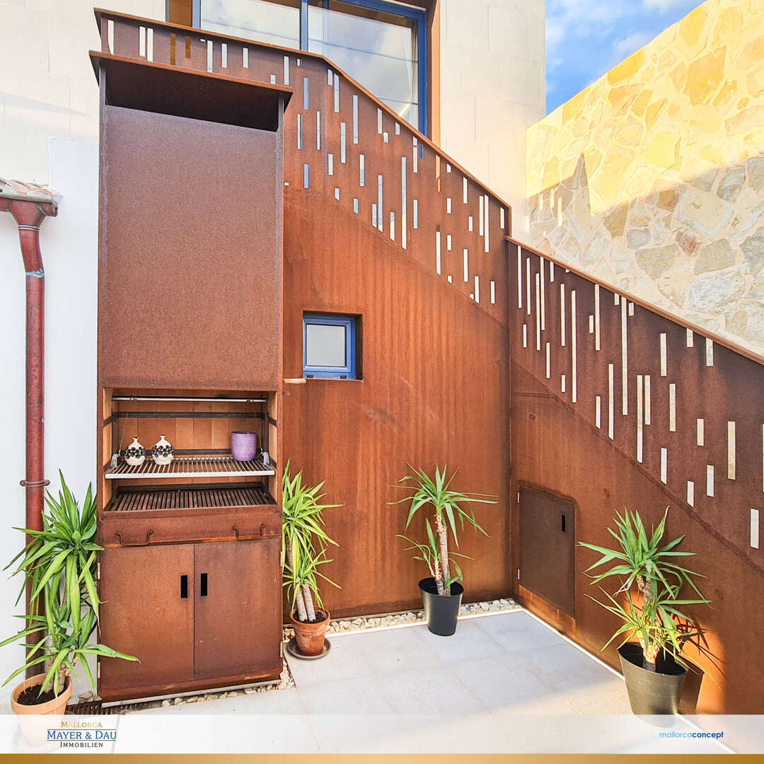 Luxurious, completely renovated and newly furnished apartment in the center of Cala Ratjada. The modern, exclusive apartment is located in this two-and-a-half-storey building, which impresses with its well thought-out architecture and high-quality furnishings. A staircase leads up to the second floor via a private entrance, which impresses with its approx. 200 m² of floor space including a traditional Mallorcan patio. The outdoor barbecue and a jacuzzi invite you to spend cozy evenings outdoors.