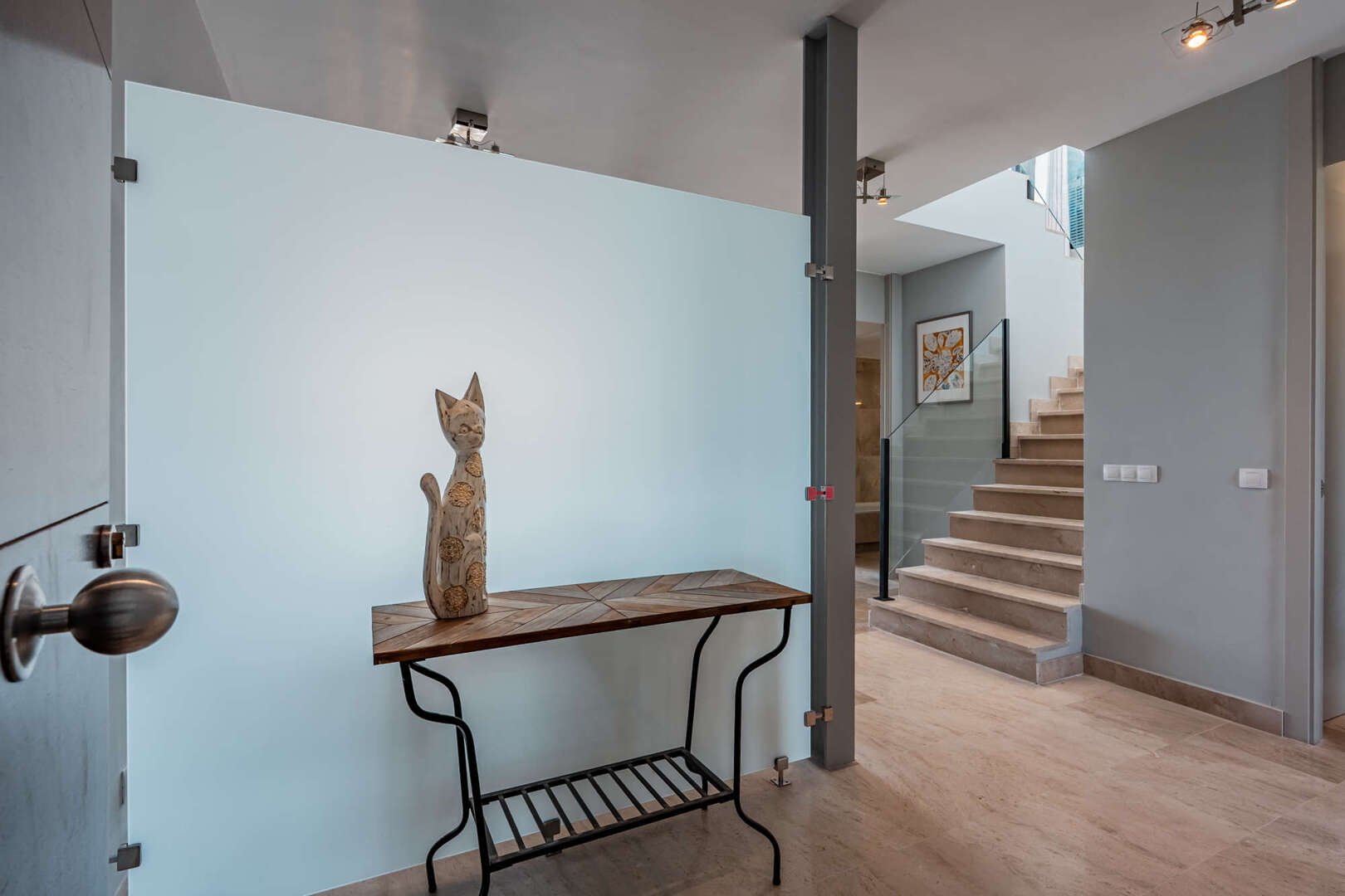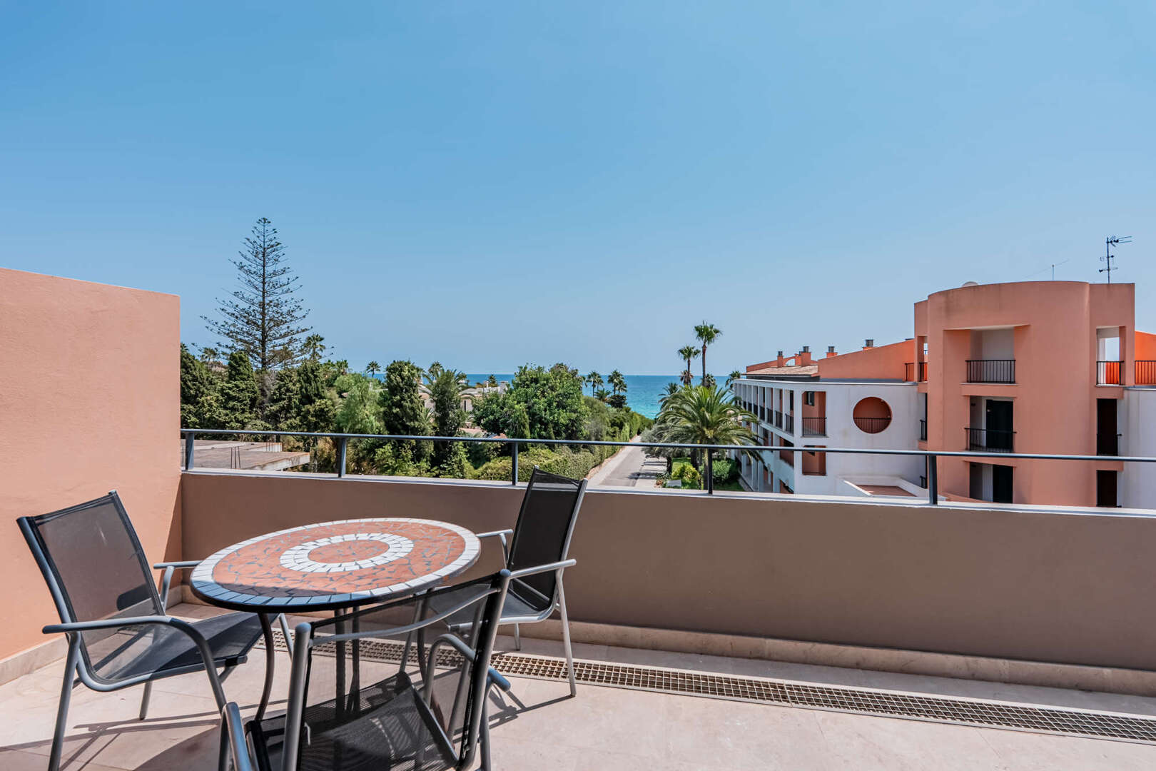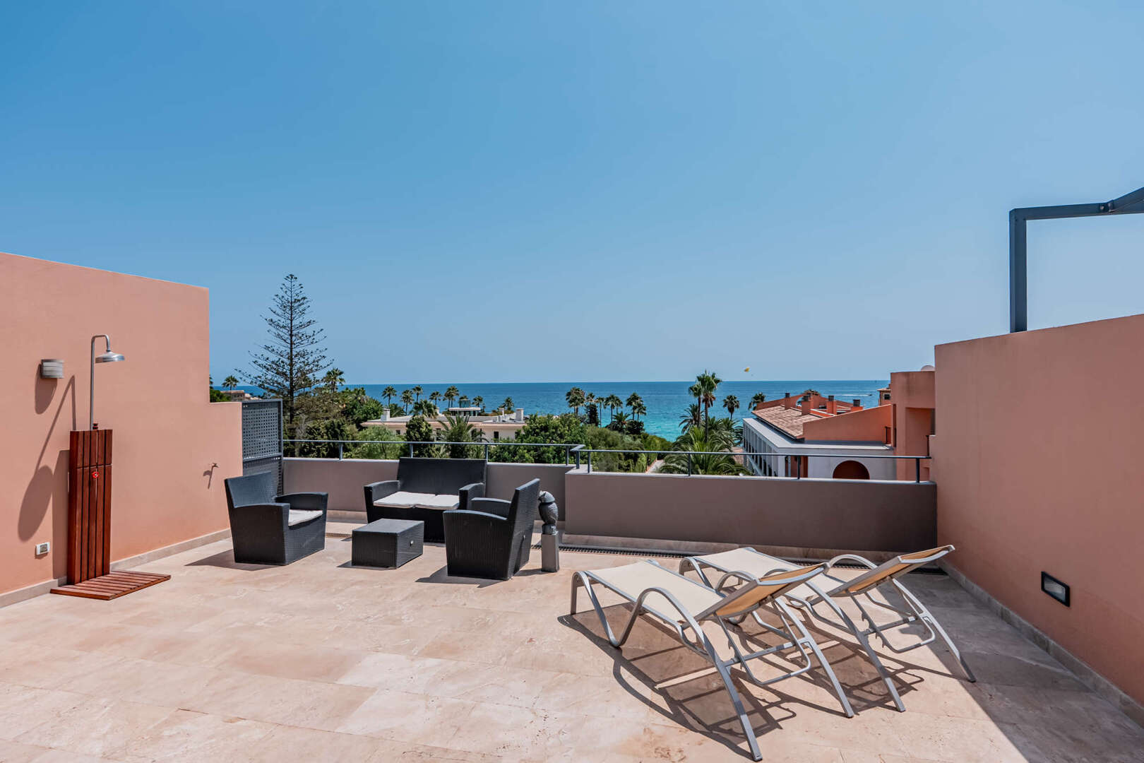 A special highlight is the spacious roof terrace with spectacular panoramic views of a landscape of palm trees and the sea. Here you will find spacious sunbathing and lounge areas as well as a practical outdoor shower to cool off on warm days and underline the Mediterranean lifestyle.