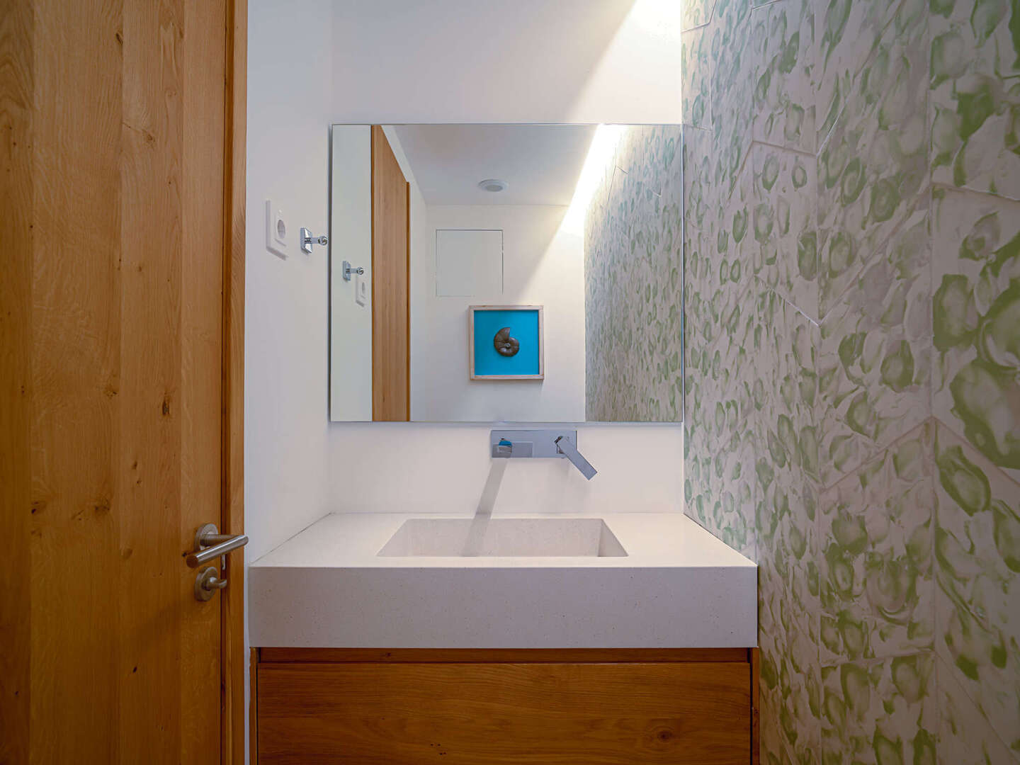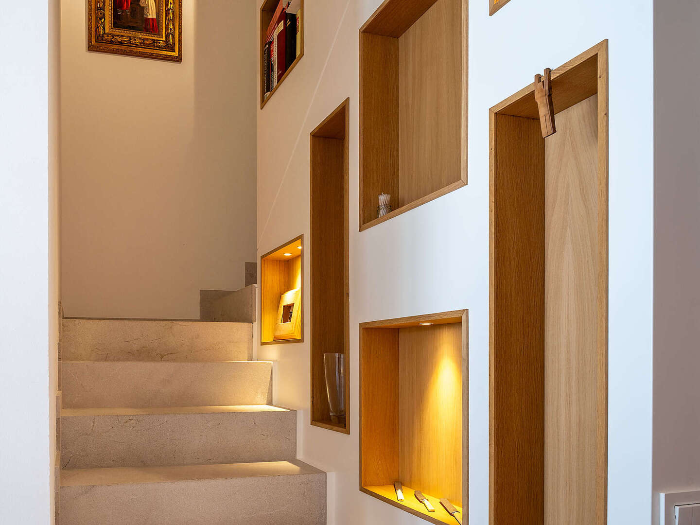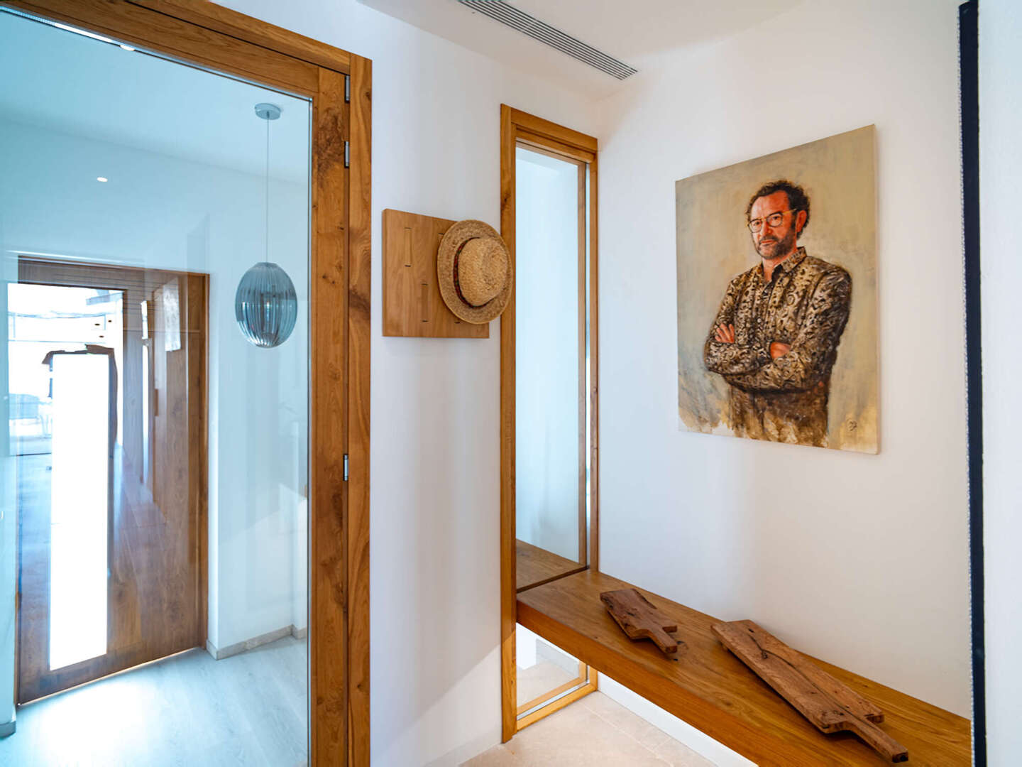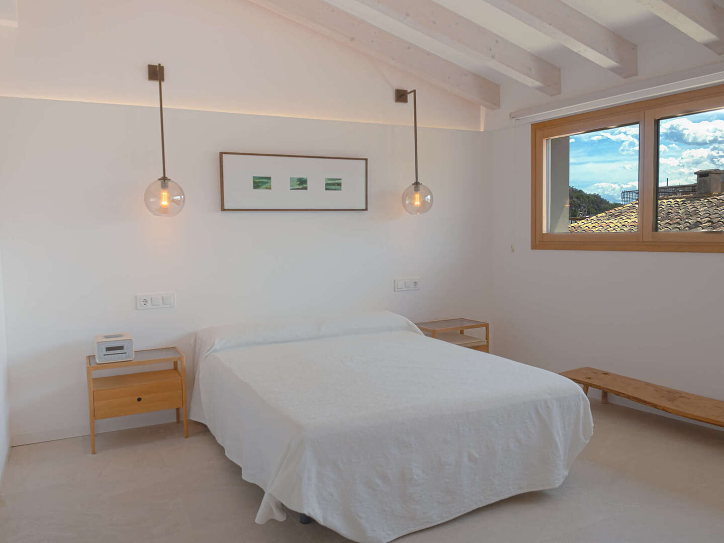 Particular attention was paid to the use of high-quality materials: Fine natural stone floors have been laid throughout the house, supported by modern underfloor heating. In addition, there are exclusive tiles that are not from standard series, but are specially made unique pieces. The walls are completely plastered with 100% lime, which ensures a healthy indoor climate. An automatic air purification system continuously filters the air, guaranteeing the highest quality of living. In the inner courtyard, a wood-fired oven invites you to cook exquisite meals and enjoy Mediterranean moments.