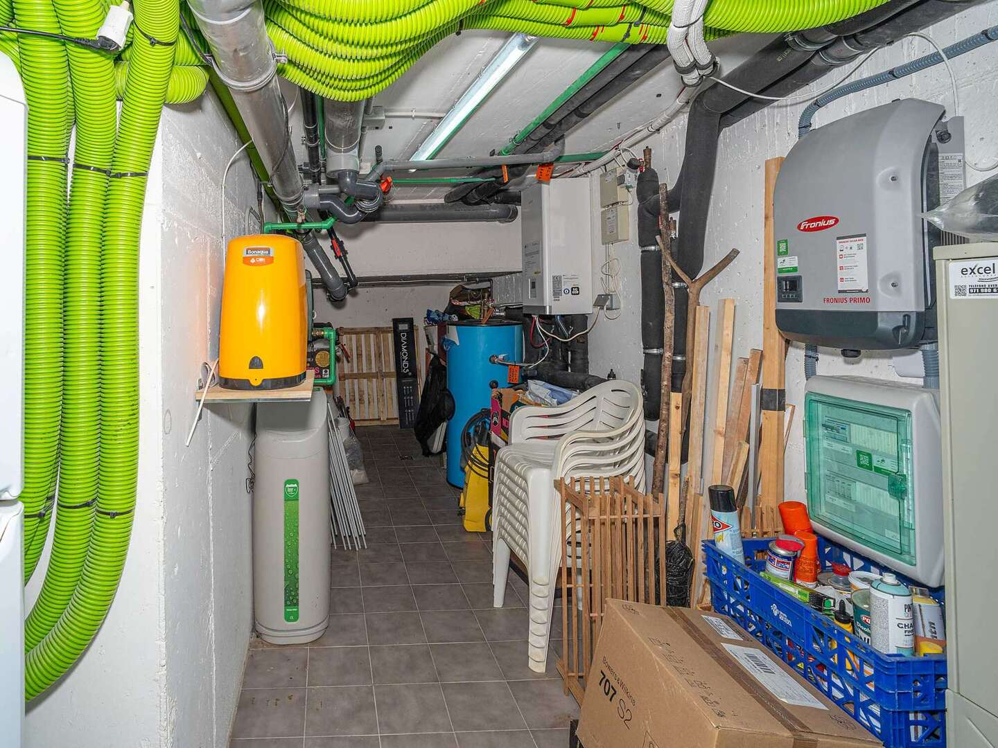The garage not only offers space for vehicles, but is also equipped with a charging station for electric cars. There is also a spacious basement that can be used in a variety of ways - as storage space, a fitness room or a hobby room. A modern aerothermal system guarantees an efficient and sustainable energy supply.