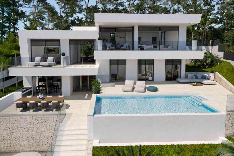 The 735m² plot offers a living space of 270m² with an open-plan living, dining and kitchen area. Hopefully you won't burn anything in the kitchen, as the view is simply breathtaking. Enjoy the sunrise on the adjoining terrace and in the evening you can leave the TV switched off, as your gaze will always go to the sea and the mountain range of the east coast behind it anyway.