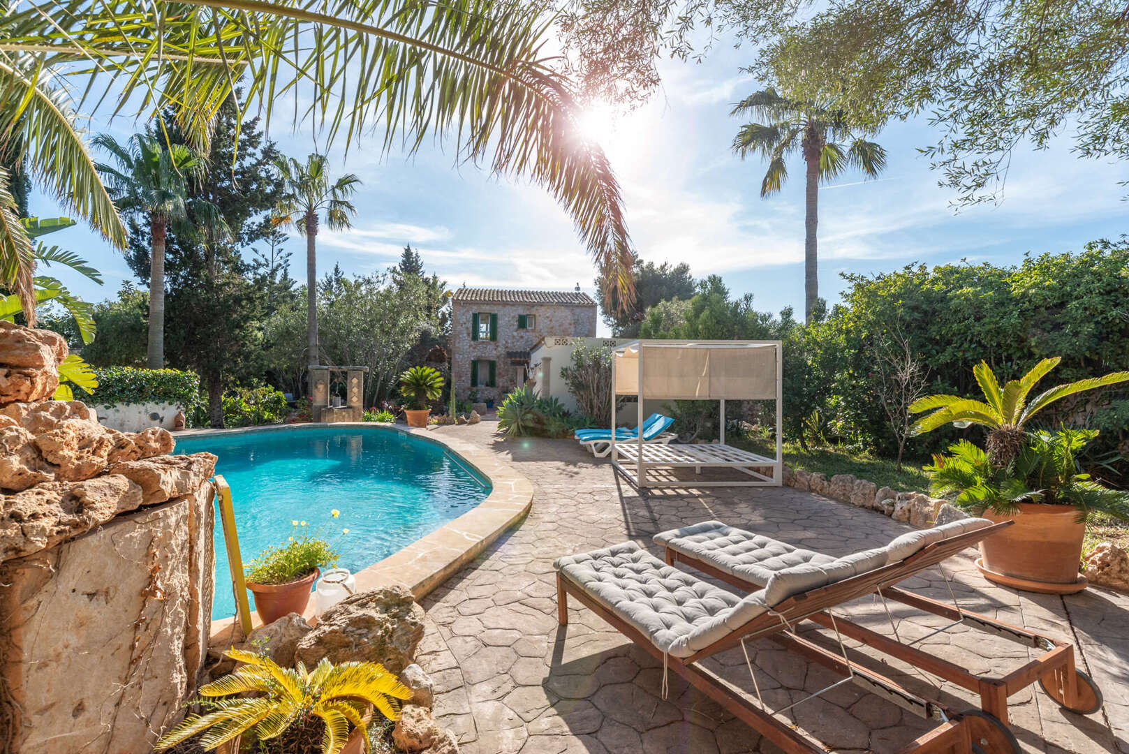 The spacious garden with impressive pool (approx. 43 m²), romantic waterfall and several seating areas creates an incomparable Mediterranean ambience.