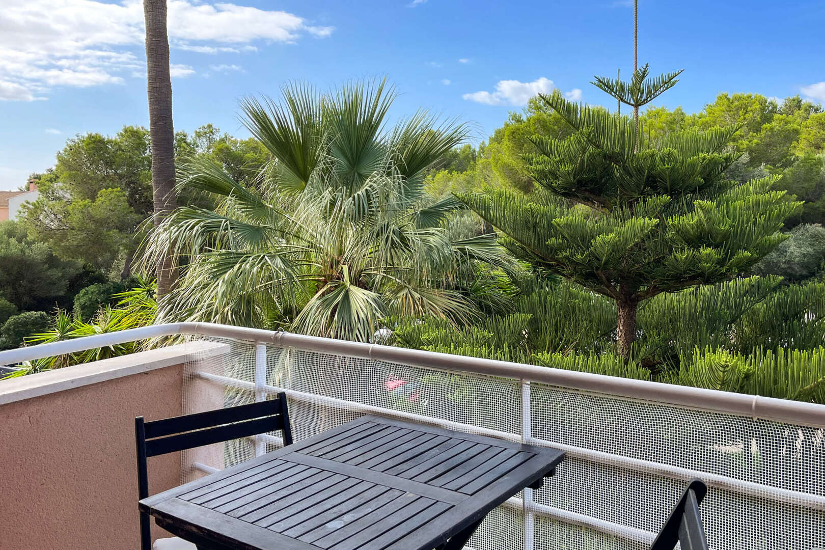 Sa Coma: Spacious apartment with palm tree views and parking space in community complex. Obj. 9083