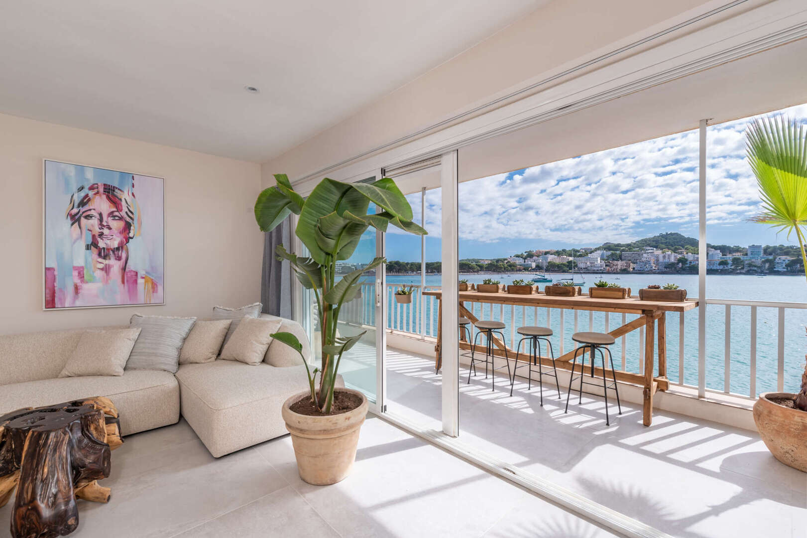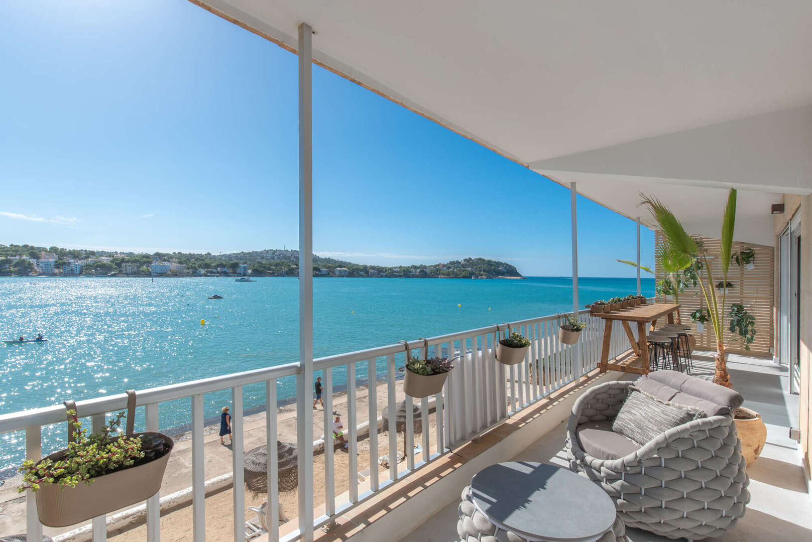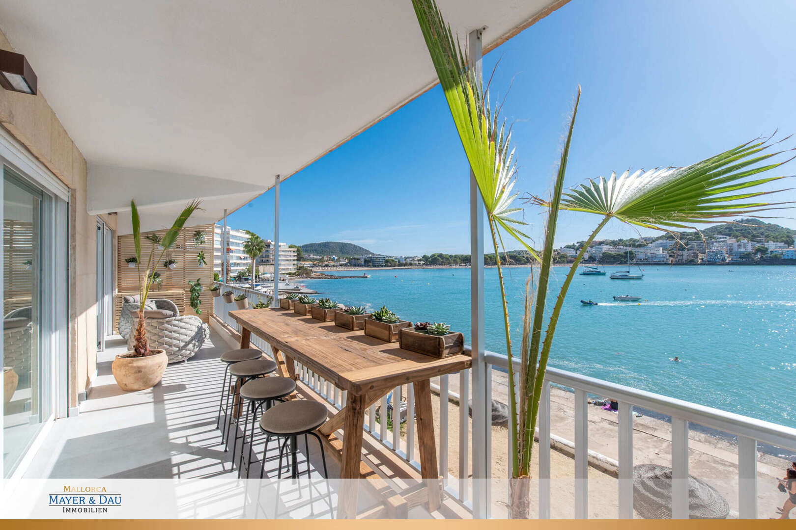 This exclusive sea view apartment in the first sea line of Santa Ponsa offers living at the highest level - directly on the Mediterranean. The completely refurbished and high-quality renovated apartment impresses with its modern design, bright rooms and an incomparable view of the sea.