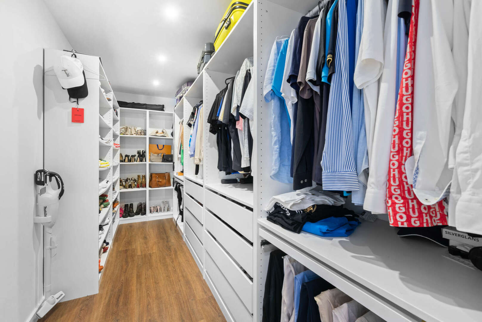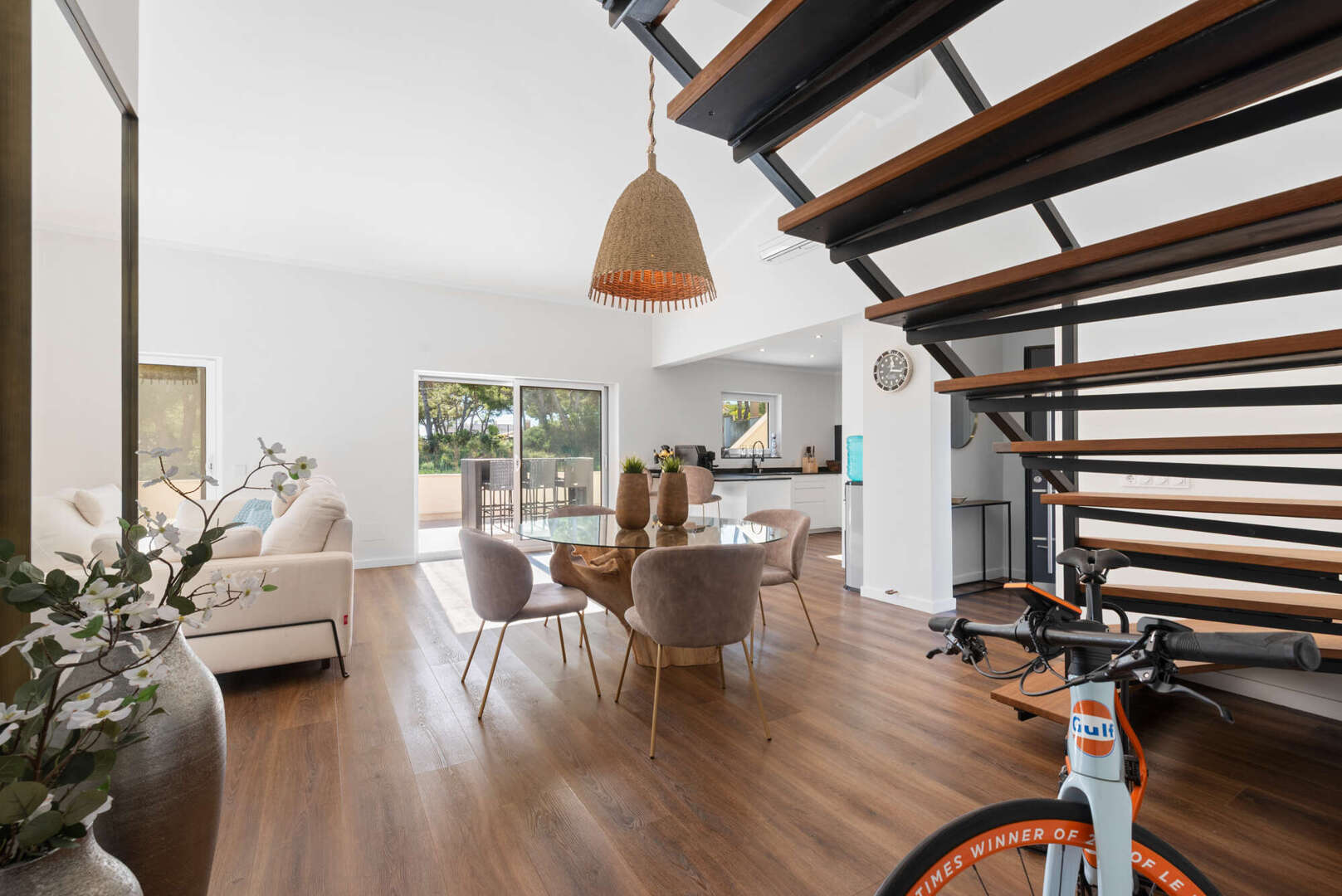 Die lichtdurchfluteten Wohnräume präsentieren sich mit einer offenen, modernen Küche und einem großzügigen Wohnzimmer mit bodentiefen Fensterelementen, die den Blick auf die hintere Terrasse sowie die Grünzone freigeben und für ein helles, freundliches Ambiente sorgen. Die überhohen Decken sorgen für ein großzügiges Raumgefühl. Die Villa verfügt über vier Schlafzimmer und drei stilvolle Bäder, darunter ein Hauptschlafzimmer mit begehbarem Kleiderschrank und Bad on Suite.