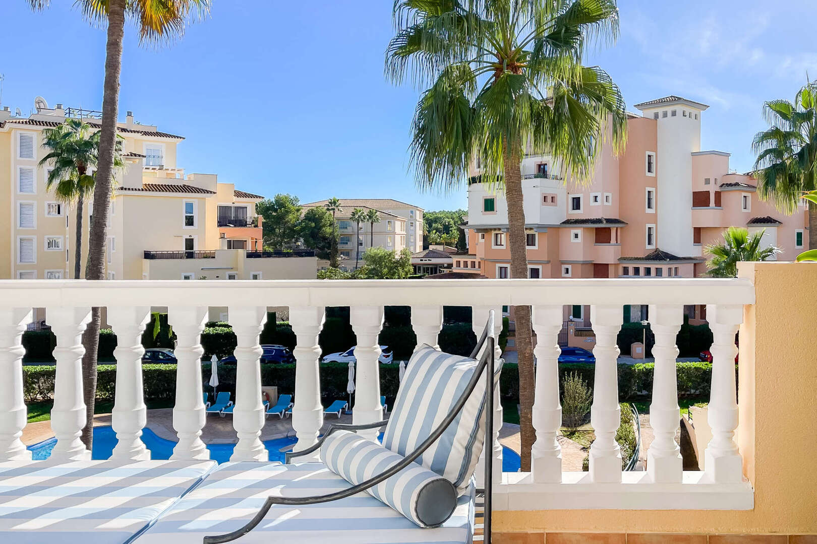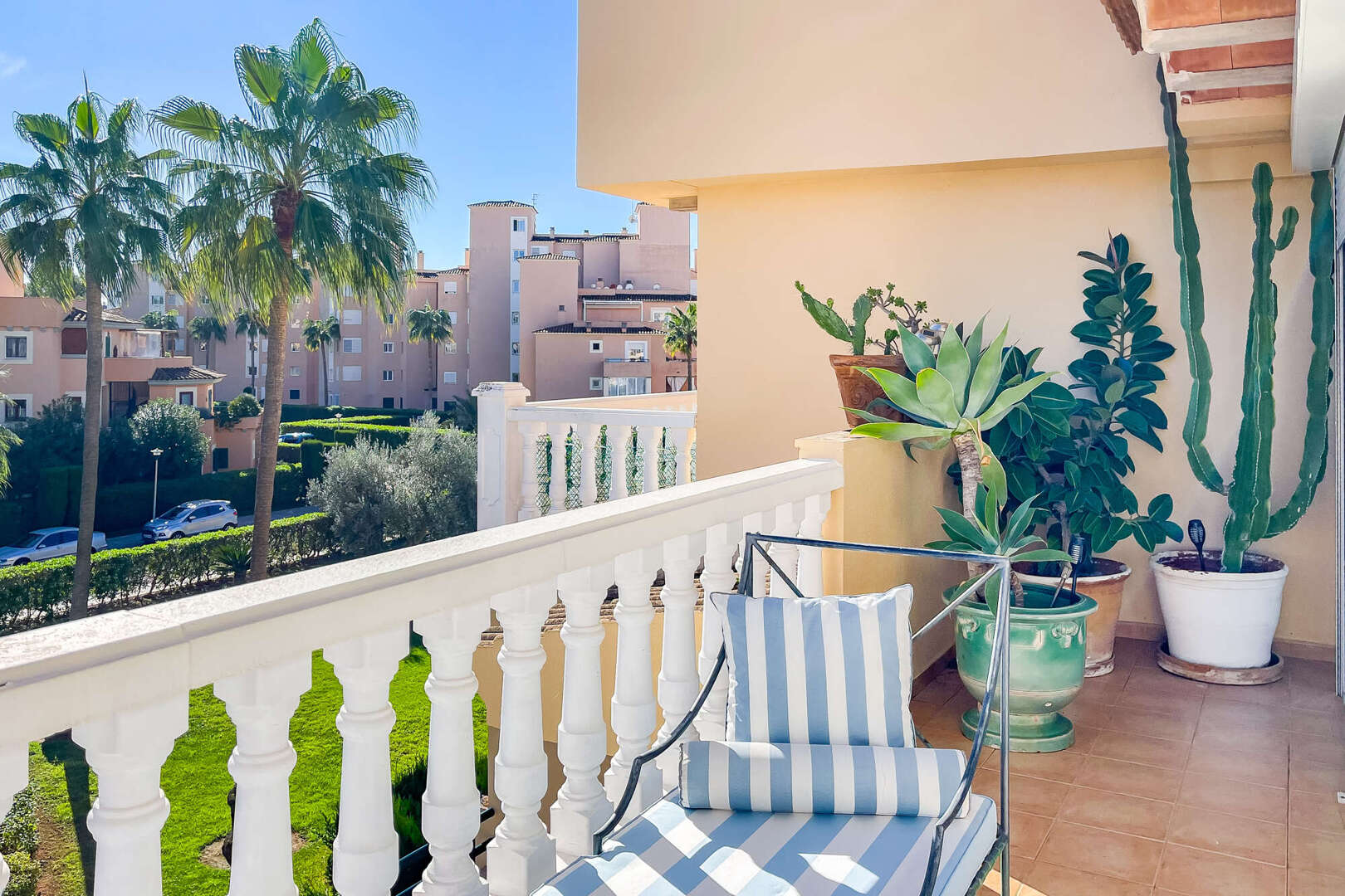 The well-kept residential complex impresses with its authentic Spanish flair and the staggered terraces, which give each apartment individuality and a high degree of privacy.