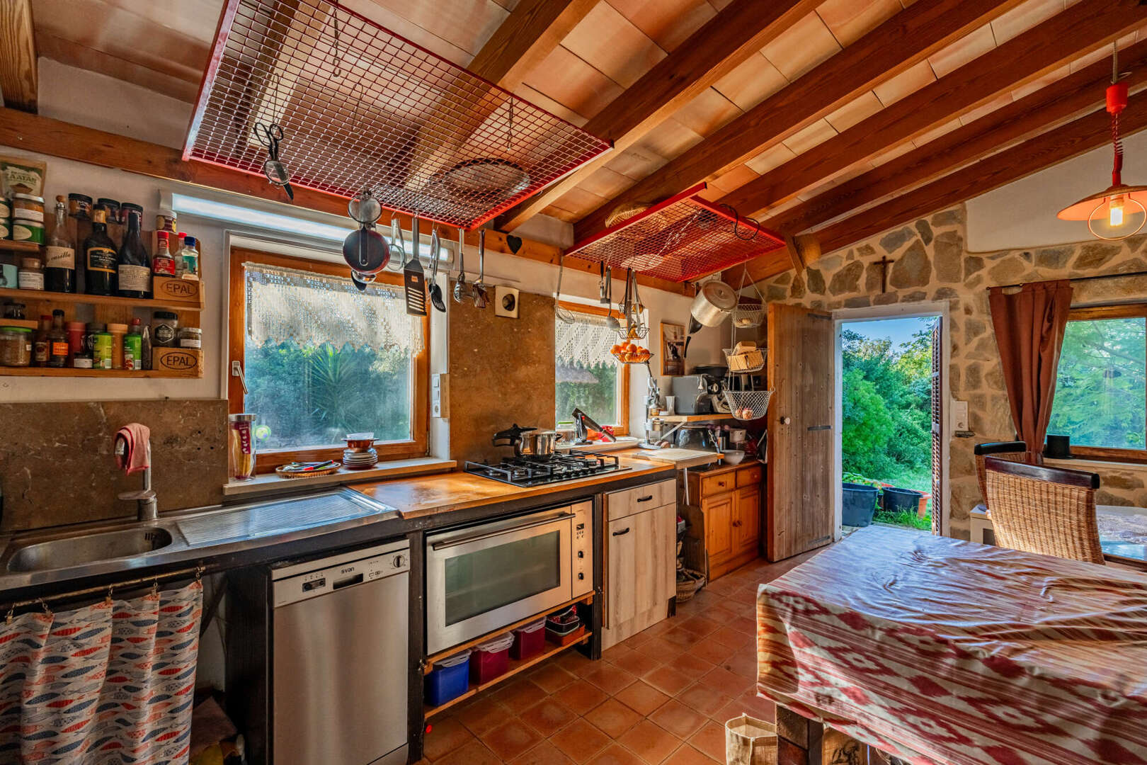 The 96 m² guest house - not visible from the main house - has a living room with gallery sleeping area, bathroom, kitchen and partly covered terrace. A perfect retreat for guests or staff.