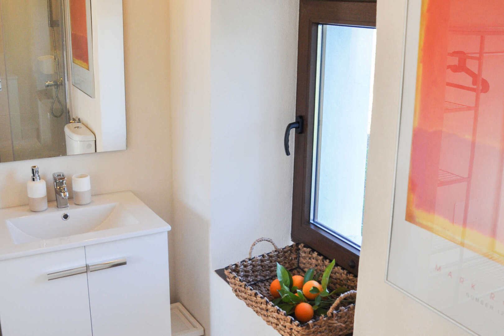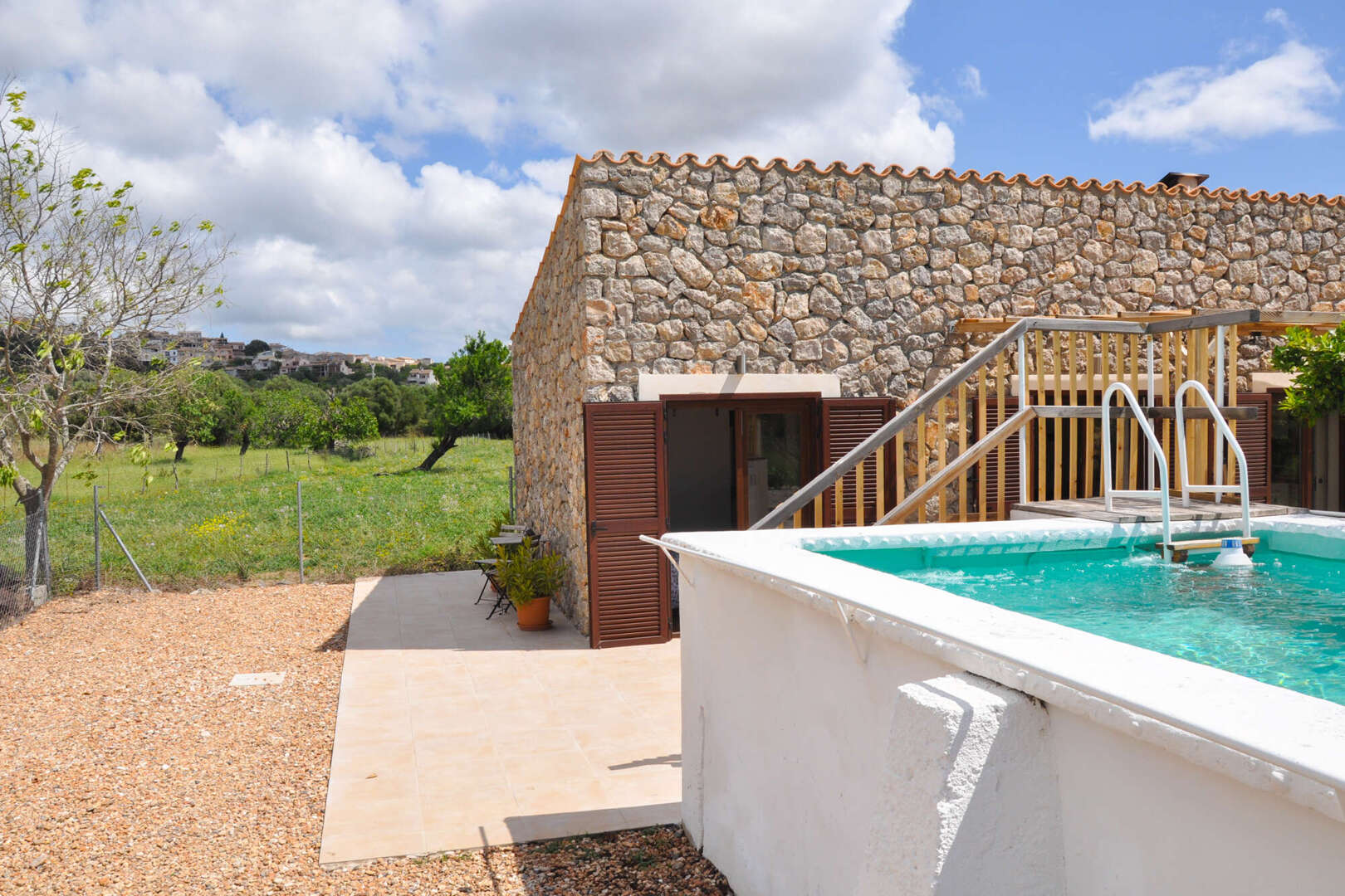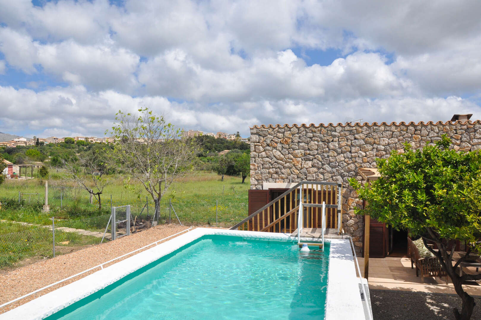 This beautiful property is located in the idyllic countryside near the charming village of Campanet on a plot of around 3,900 m², surrounded by Mediterranean tranquillity and numerous olive, orange, lemon and plum trees. The small, lovingly designed eco-cottage combines Mallorcan character with modern living comfort and is ideal as a private retreat or high-yield vacation property. The finca has two cozy bedrooms, each with its own bathroom, an inviting living room with fireplace and an elegant, open-plan kitchenette. There is a wonderful terrace in front of the house, perfect for long summer evenings and relaxing hours outdoors. Particularly noteworthy is the former water tank, which has been converted into a stylish pool and provides pleasant cooling in the warmer months. Outside, there is also a small room for the washing machine and a practical tool shed, which makes everyday life easier and provides additional storage space. The house is sustainably powered by solar energy, while a municipal water connection ensures a reliable supply. All buildings are legally constructed and have all permits and complete documentation. A significant added value is the valid vacation rental license, which not only makes this property particularly attractive, but also demonstrably provides excellent income during the summer season. This property offers a rare combination of nature, tranquillity, modern comfort and economic potential - ideal as a second home and at the same time as a secure investment in Mallorca.
