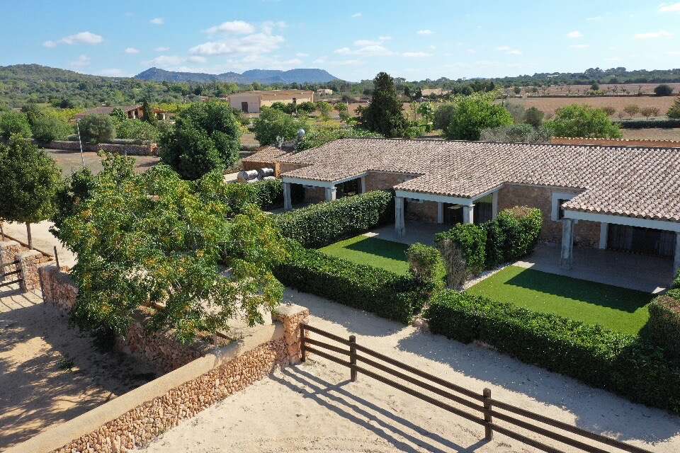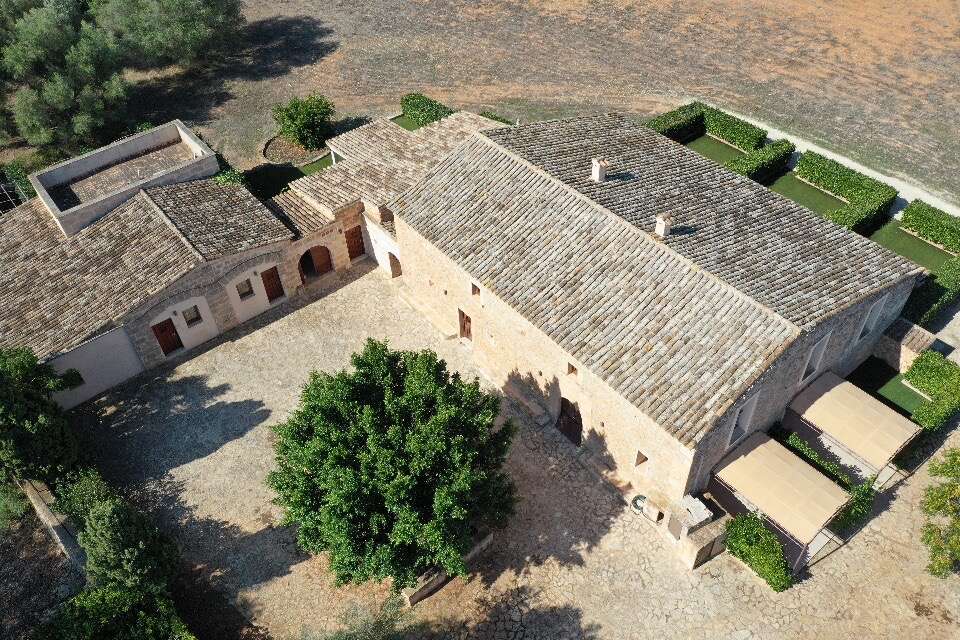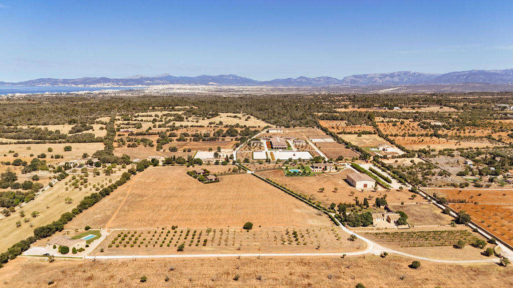 This exceptional estate near Llucmajor combines historic character, luxurious condition, and an extraordinary level of space and privacy—an offering rarely found on Mallorca. Set on a flat plot of approximately 320,000 m², the self-contained complex dates back to 1843 and was extensively restored, expanded, and fully modernized in 2019.