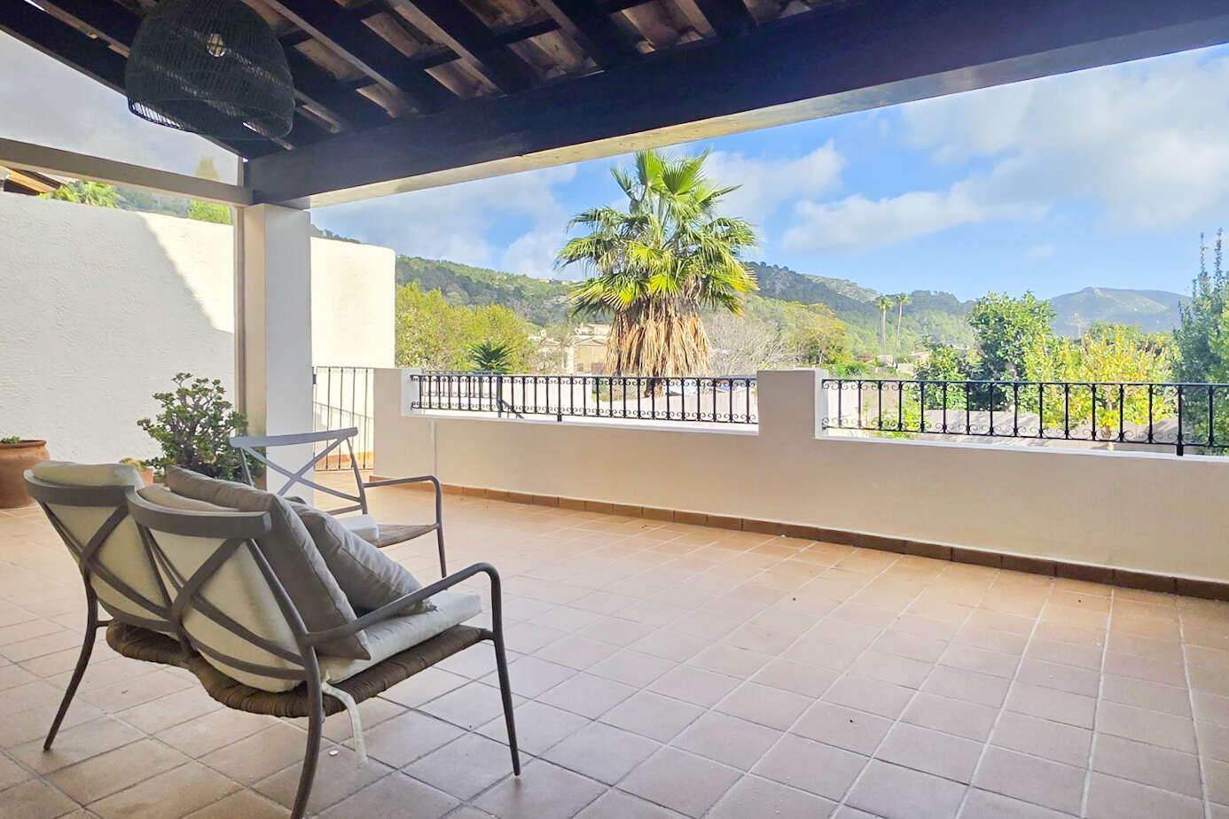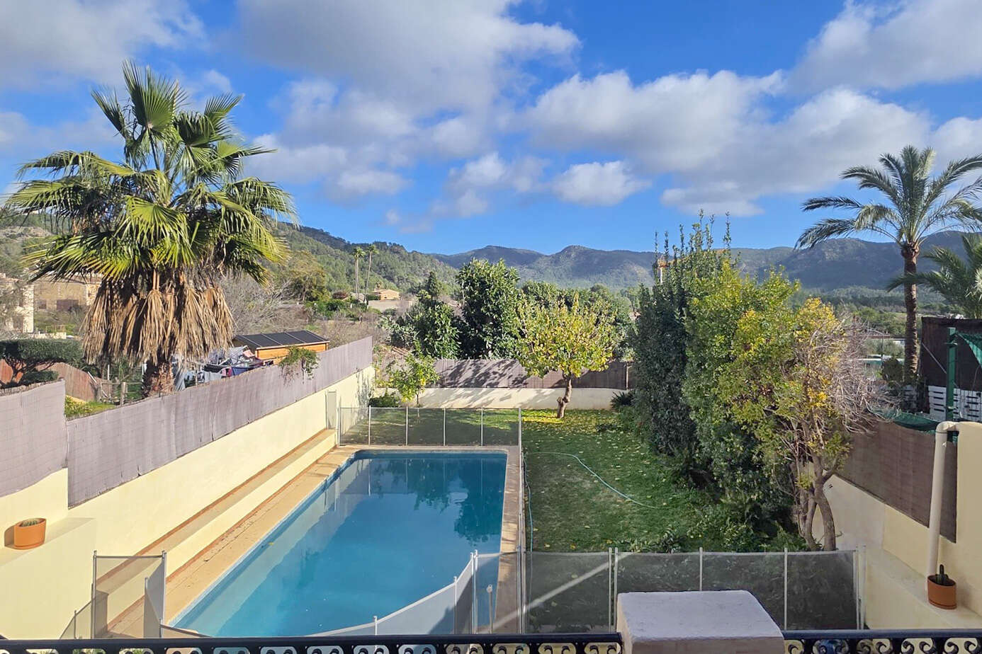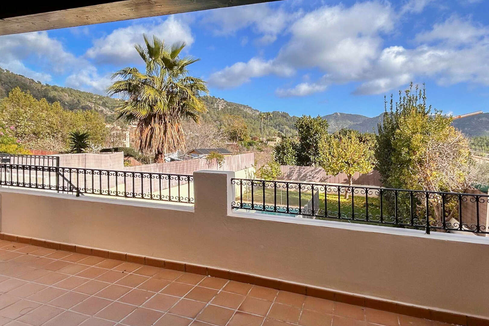 The outdoor area impresses with a private garden area and a large pool that invites you to relax and enjoy. The unobstructed view of the surrounding mountain landscape underlines the special location and creates a feeling of peace and privacy.