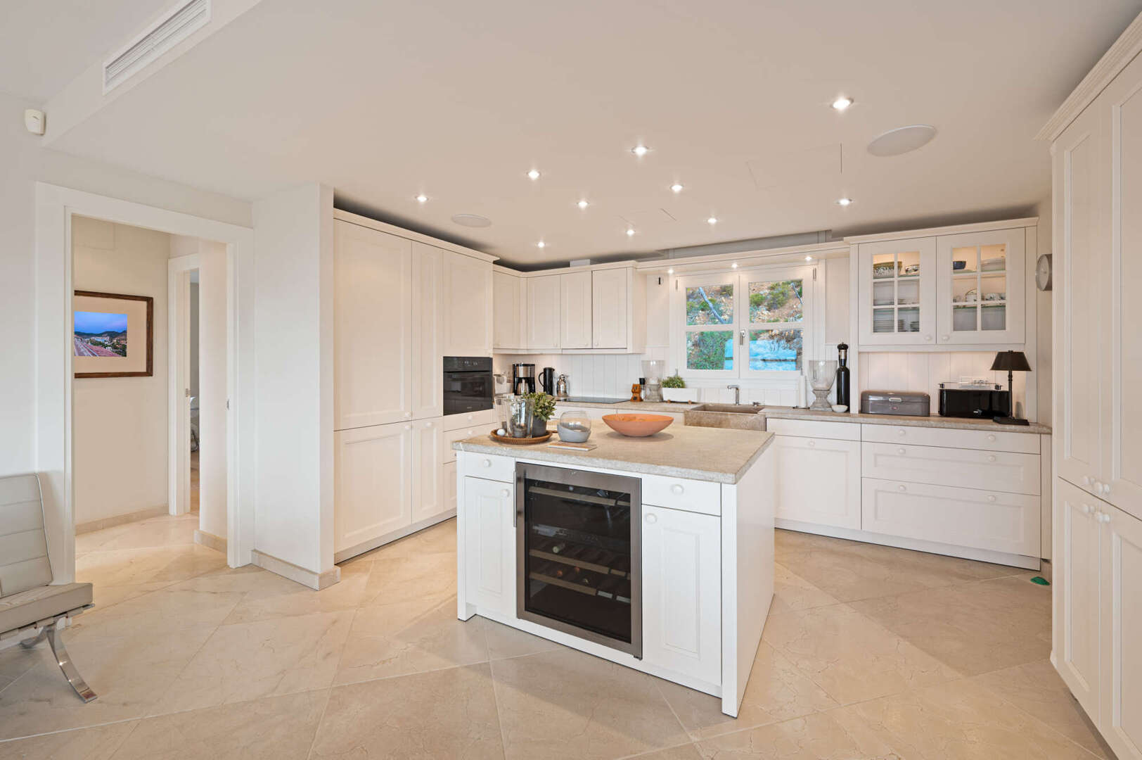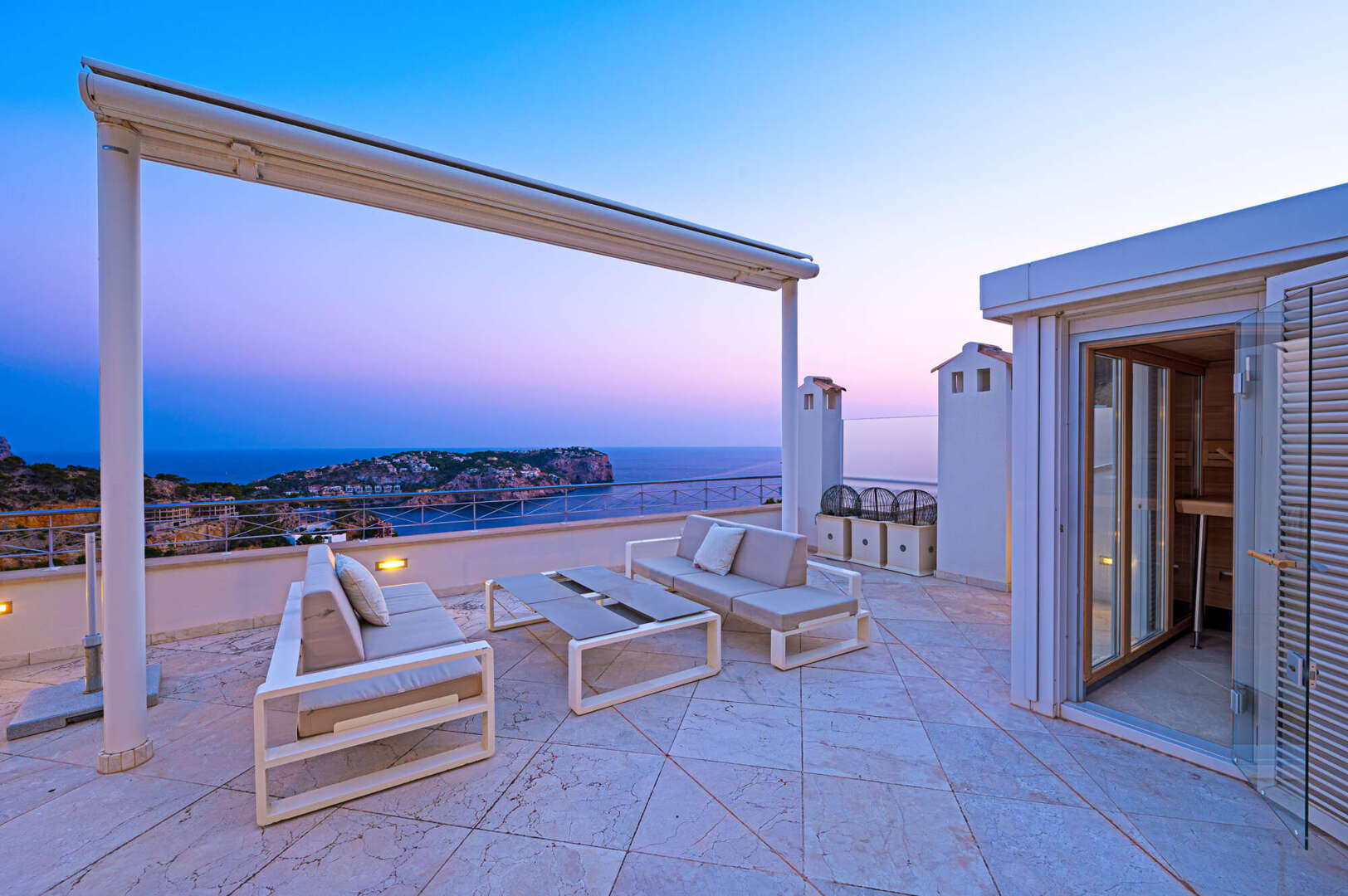Noble Mallorcan natural stone floors lend all rooms a special elegance, while the spectacular view of the lively harbor, the endless Mediterranean Sea and the imposing Tramuntana mountains fascinates anew every day.
