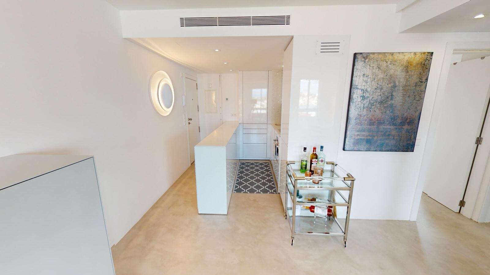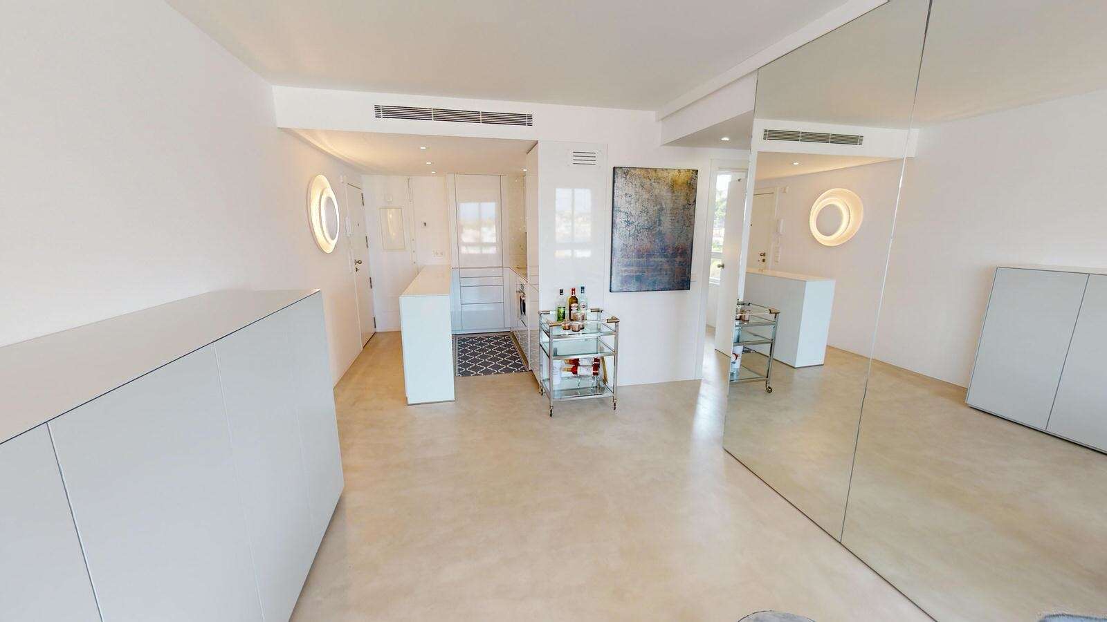 A spacious private parking space is located in the adjacent building and can be purchased for an additional €50,000. Furthermore, a storage room and a laundry service are available.