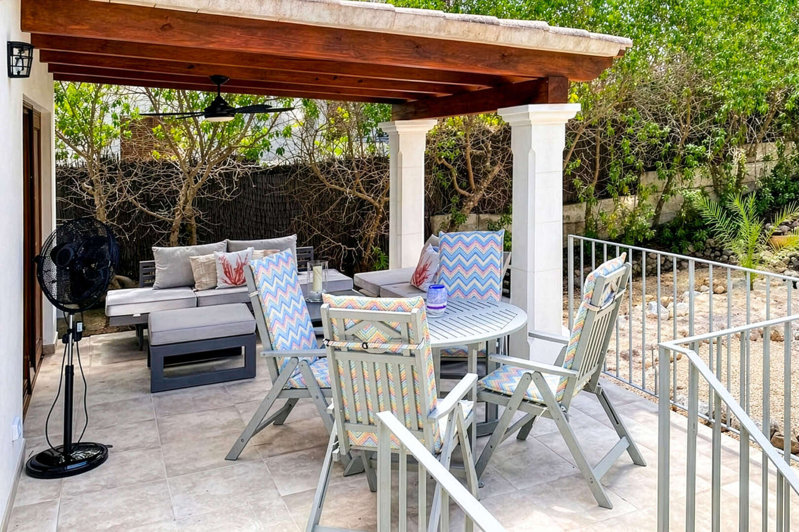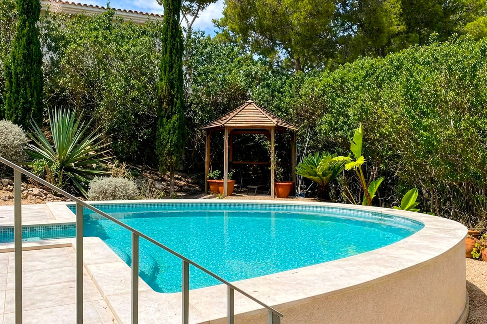 The villa offers three bedrooms and a separate guest studio. There is also the option of creating a further bedroom in the spacious utility room. The lovingly landscaped Mediterranean garden with several terraces, pool and an extraordinary ice bath with electric cooling guarantees a high degree of privacy.