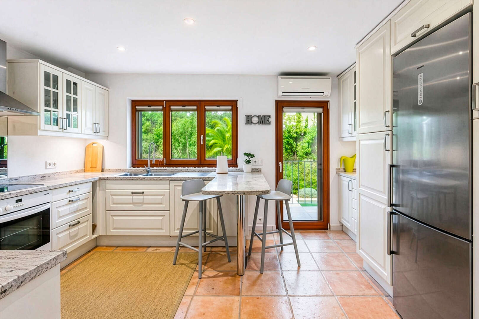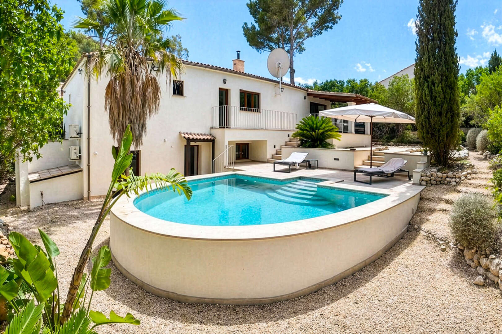 This charming villa with a Mediterranean touch is located in a quiet residential area between the renowned golf courses of Santa Ponsa and the sea. Surrounded by an impressive natural landscape, the location combines relaxing tranquillity with excellent infrastructure. The town center, two marinas and a wide range of sports and leisure activities are just a few minutes away.