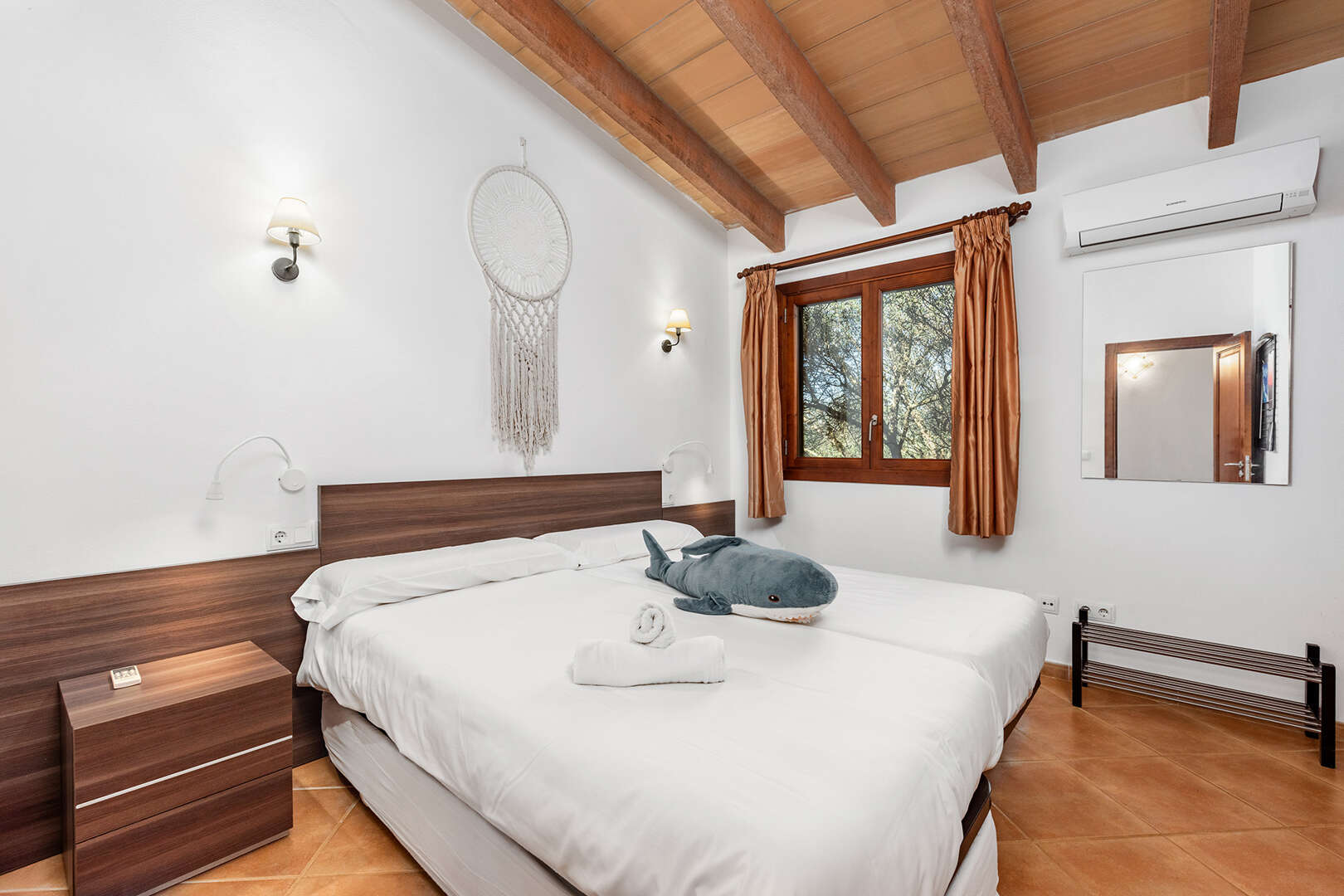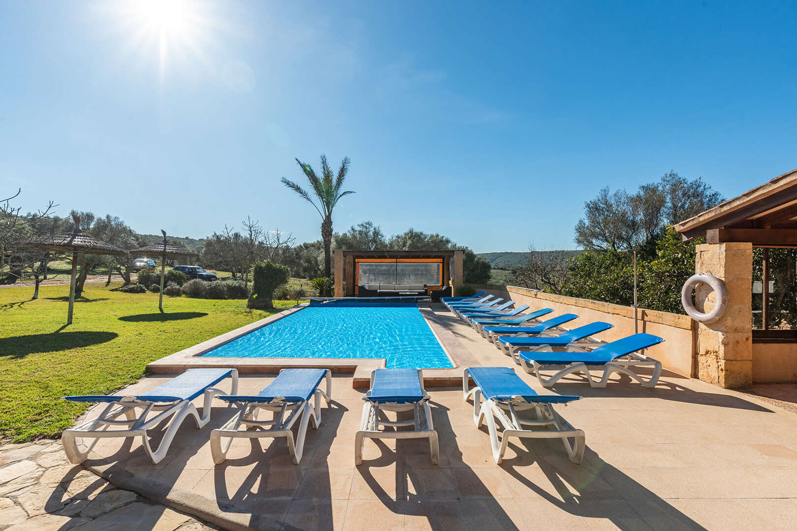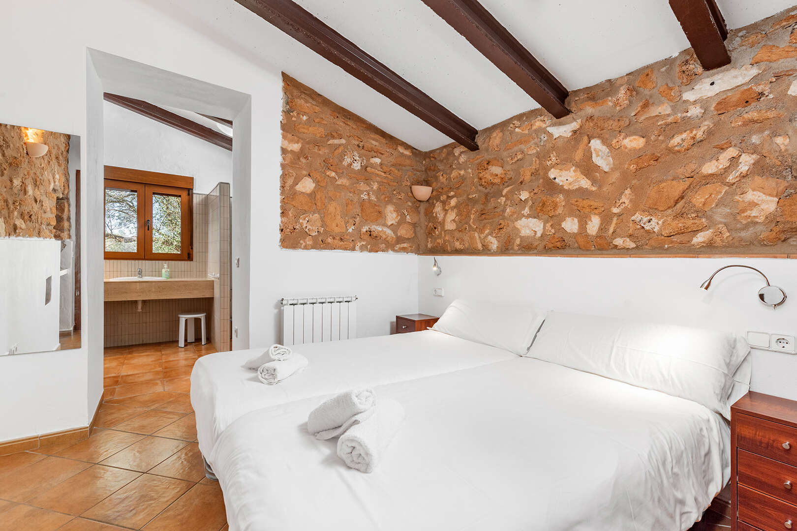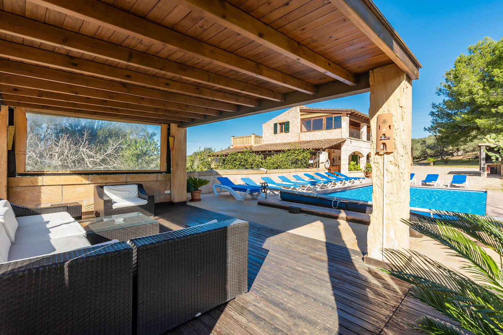 The first finca has seven spacious bedrooms and six bathrooms, making it ideal for larger groups or families. The property is equipped with an air-conditioned pool, which provides refreshing relaxation even on hot summer days. The interior offers a cosy ambience.