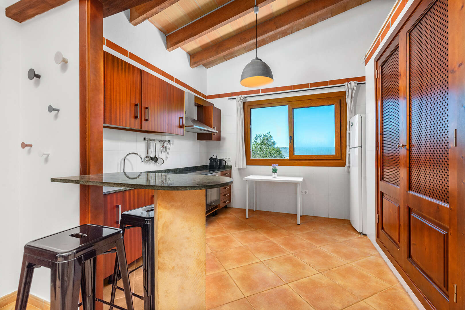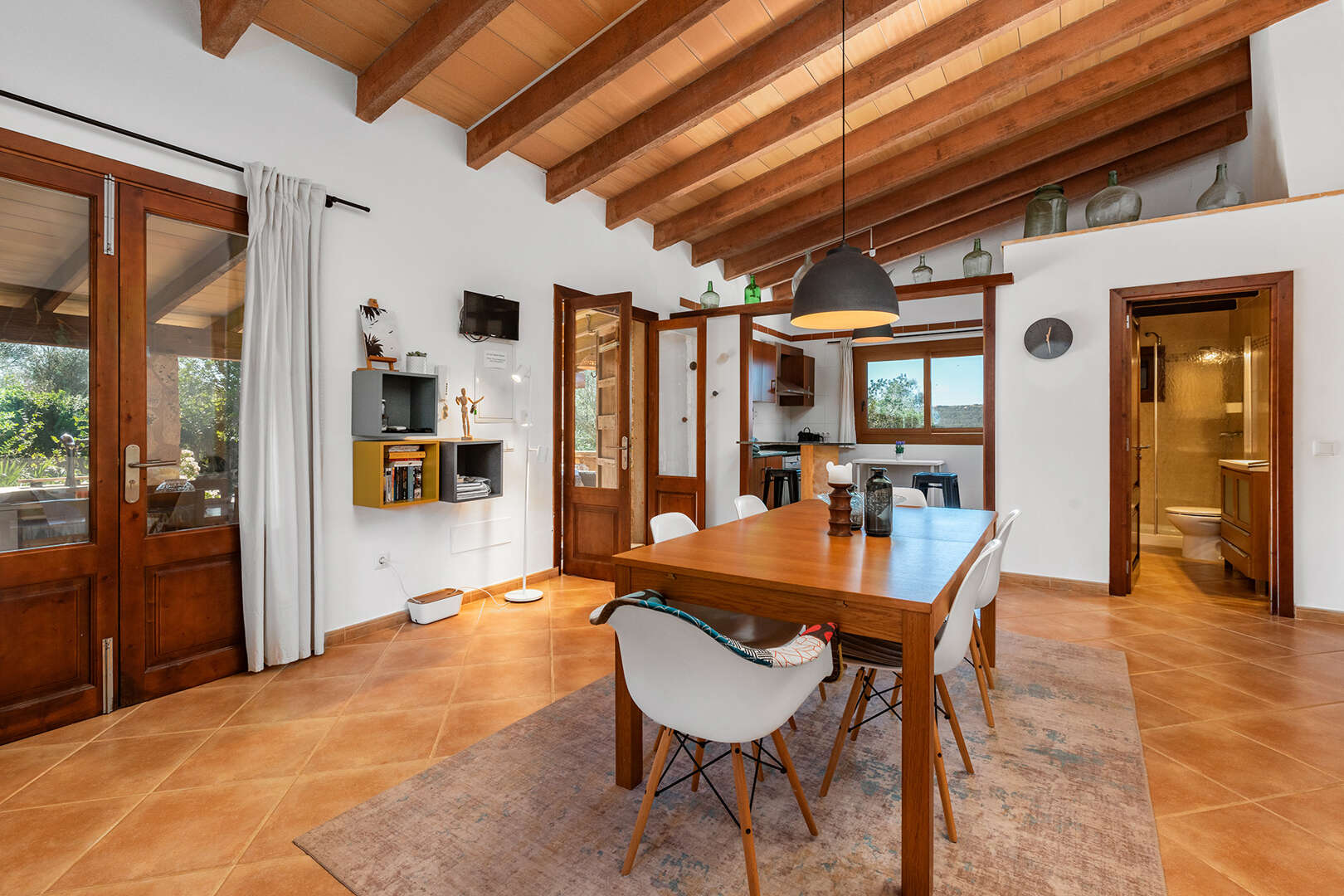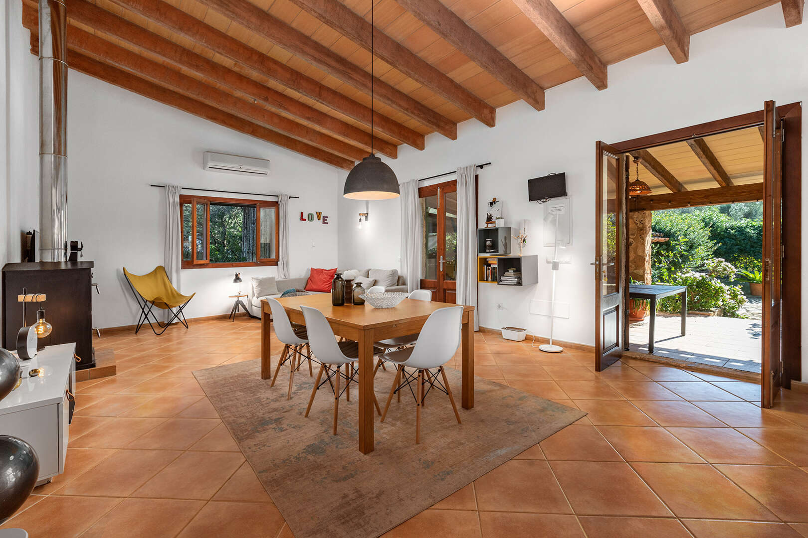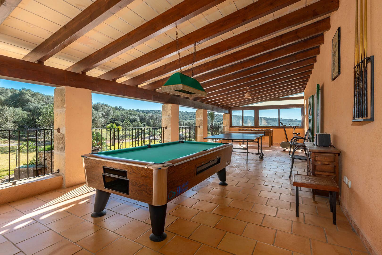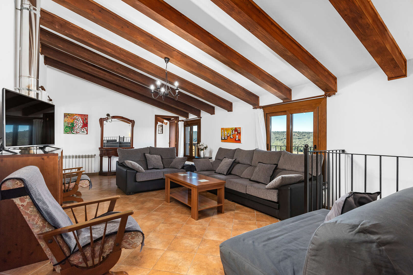 The first finca has seven spacious bedrooms and six bathrooms, making it ideal for larger groups or families. The property is equipped with an air-conditioned pool, which provides refreshing relaxation even on hot summer days. The interior offers a cosy ambience.