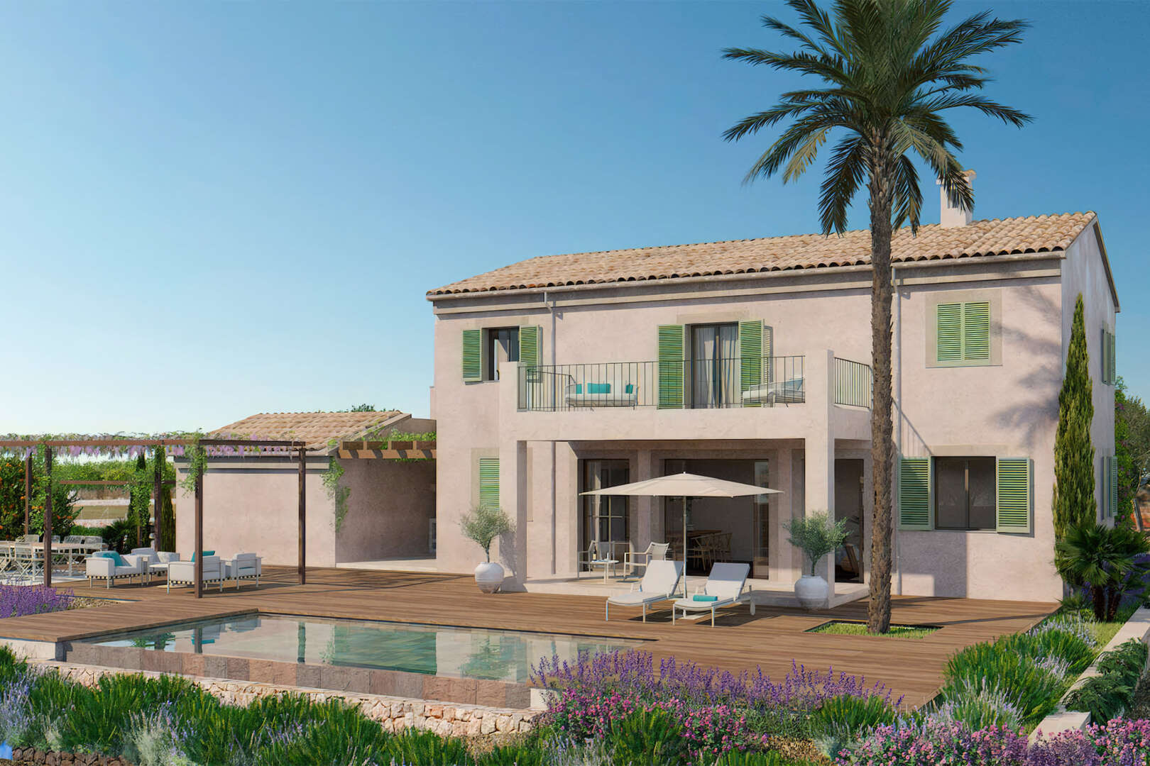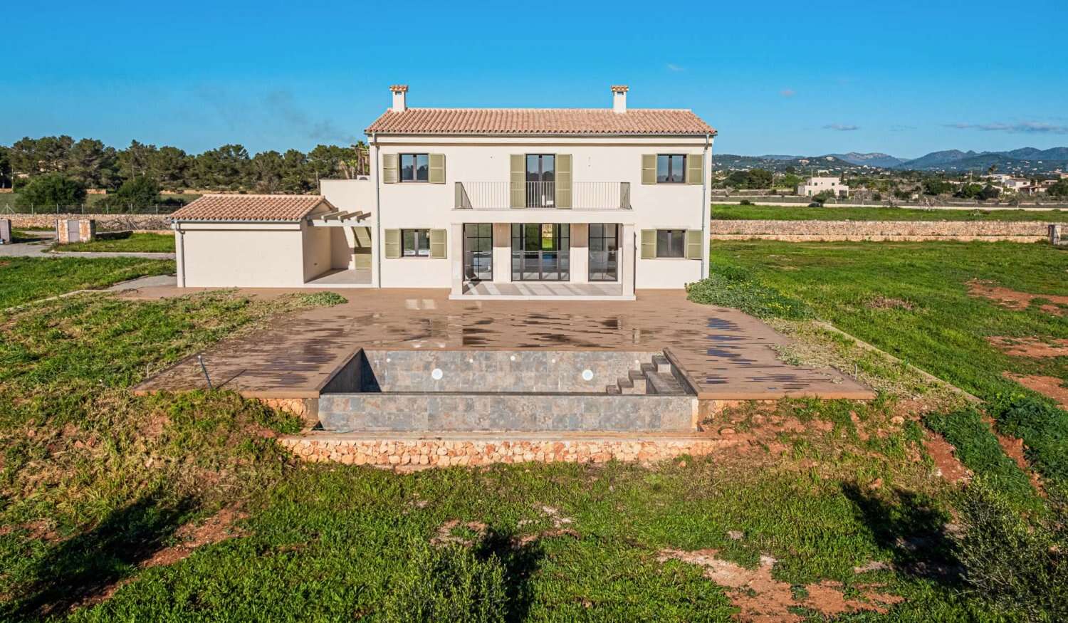 This Mallorcan new-build finca is situated on a plot of 18,984 m² just outside the tranquil coastal town of Porto Cristo. The house has a living/usable area of approx. 324 m². The room layout is as follows: