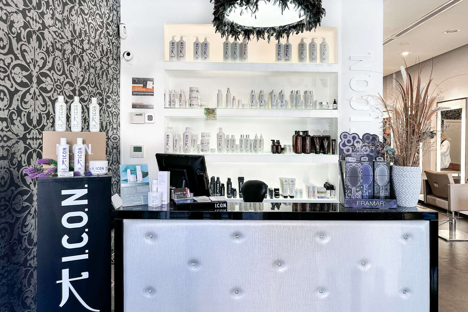 * Área de recepción con mostrador y zona de espera