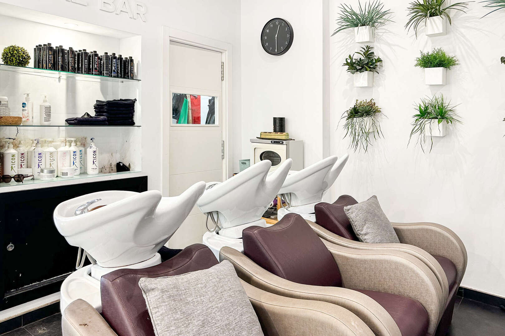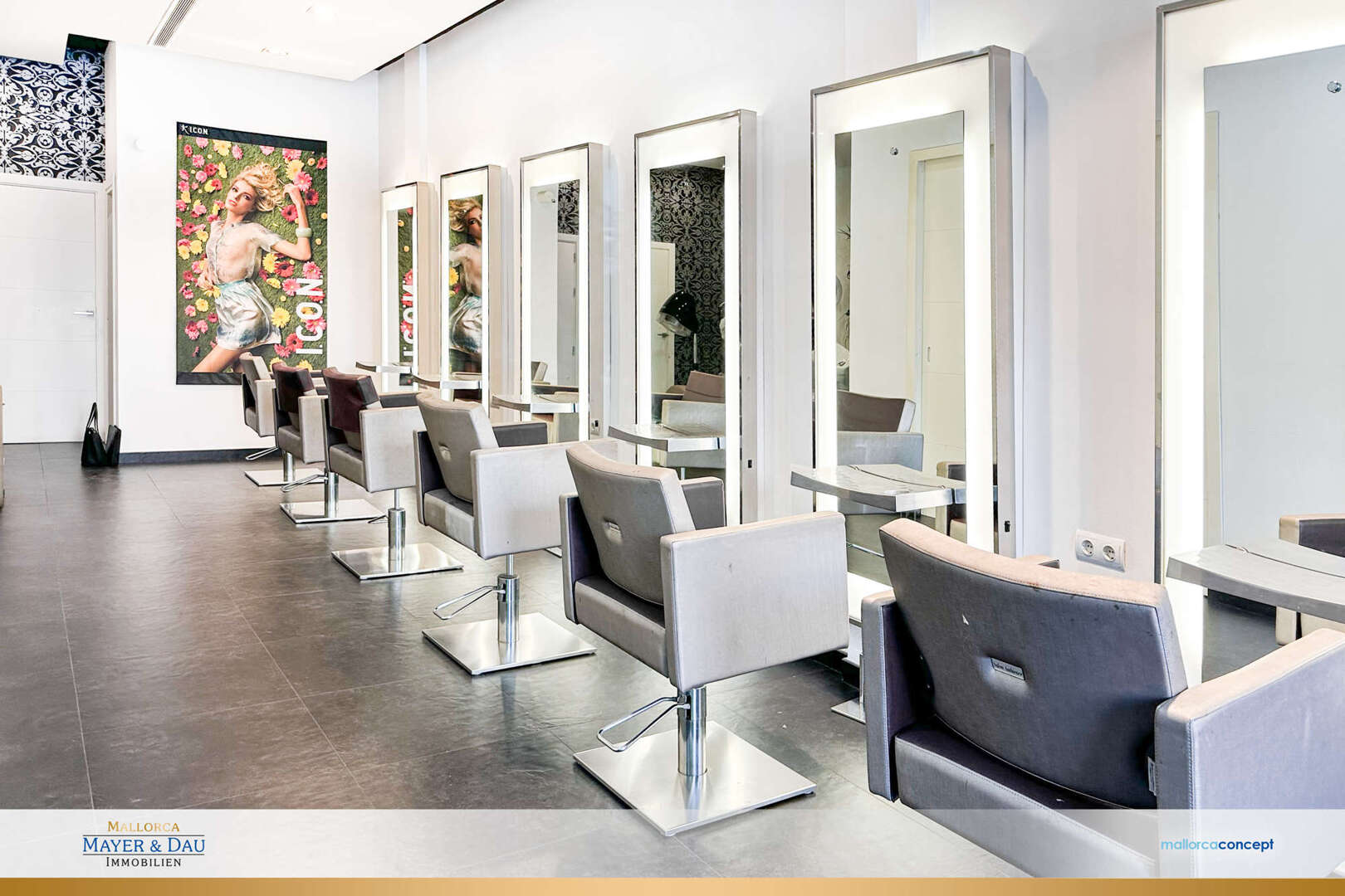 Este salón de peluquería de diseño elegante y ubicación ideal en el corazón de Artá ofrece todo lo que necesita un negocio de peluquería moderno en aprox. 98 m². Con 6 puestos de trabajo profesionales, es capaz de atender a un gran volumen de clientes de forma eficiente y los 3 lavabos de alta calidad garantizan un proceso sin problemas. Un lavadero independiente con lavadora ofrece espacio suficiente para guardar la ropa y los productos de cuidado.