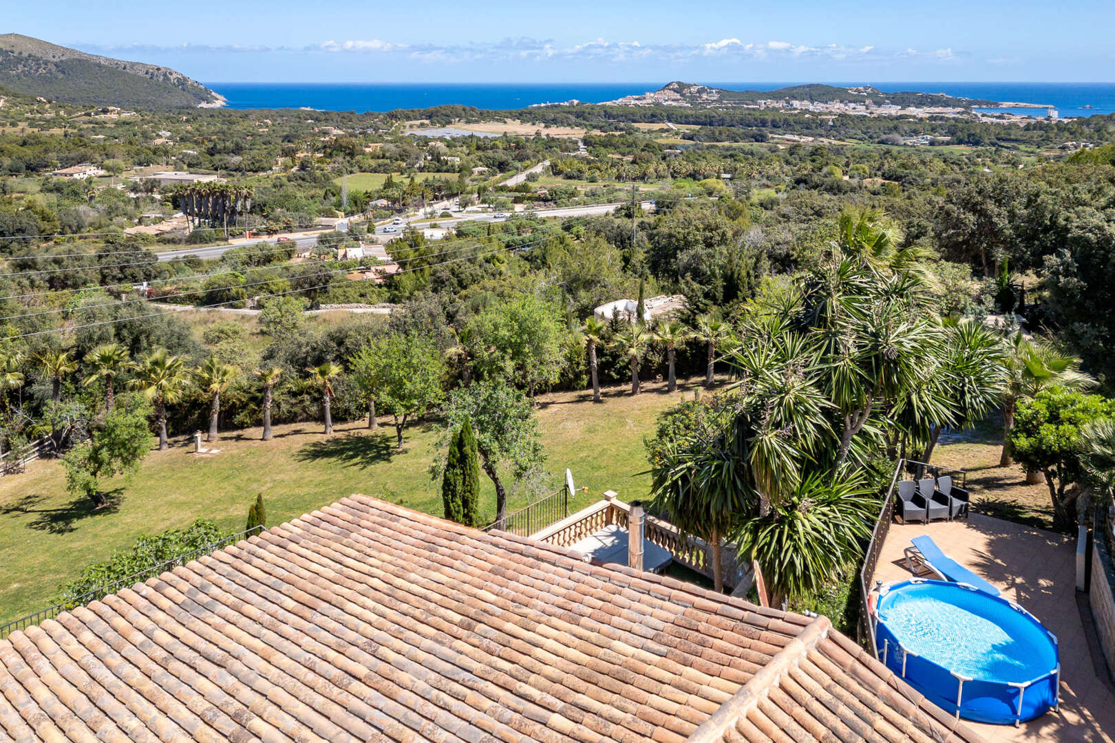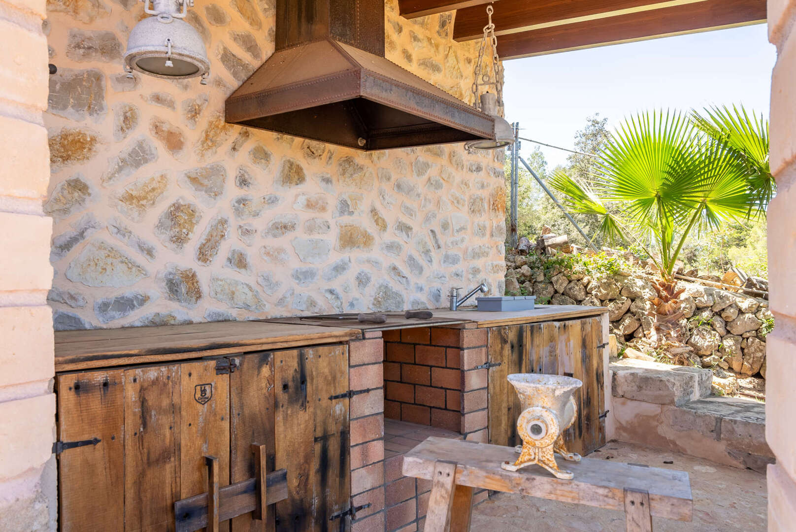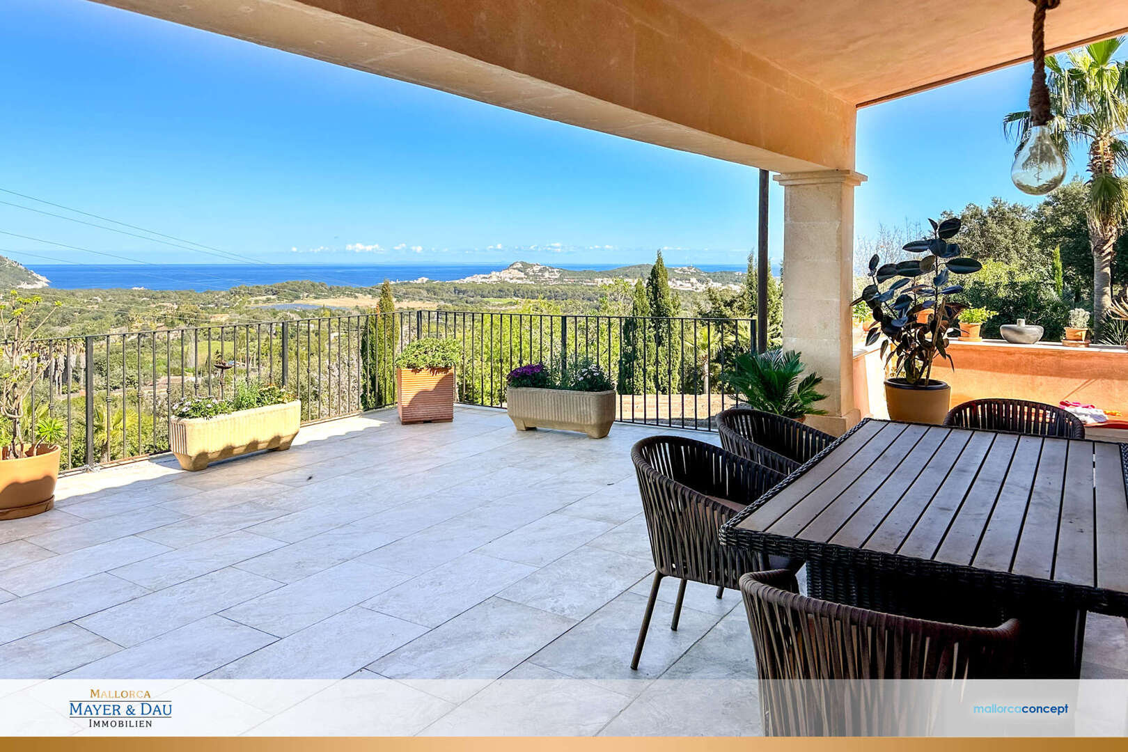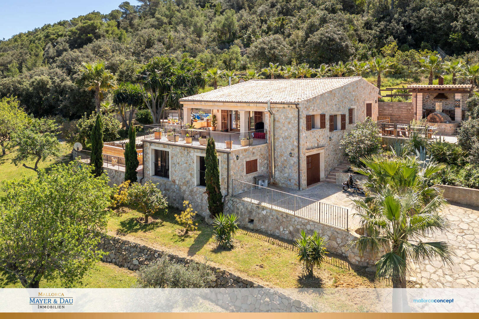 Esta impresionante finca se presenta en un estilo mallorquín particularmente hermoso con fantásticas vistas al mar y panorámicas. Esta propiedad especial se extiende sobre una enorme parcela de 27.000 m² y ofrece una superficie útil de 243 m². Materiales de alta calidad y un diseño bien pensado crean un ambiente acogedor en cada habitación. Esta exclusiva finca ofrece una distribución óptima de las habitaciones, dos amplios dormitorios, tres cuartos de baño, una cocina americana con comedor y un salón con una acogedora chimenea. Hay disponible una habitación más para hacer vida diáfana. Destacan las vistas únicas al mar, una sauna privada, un jacuzzi y la posibilidad de construir una piscina en la parcela. El permiso de obras necesario se concederá en breve. La finca está actualmente dividida en 2 unidades residenciales separadas, los planes para la fusión y la legalización han sido elaborados y ya presentados. Por lo tanto, el nuevo propietario todavía tiene la opción de incorporar sus propias ideas de diseño.