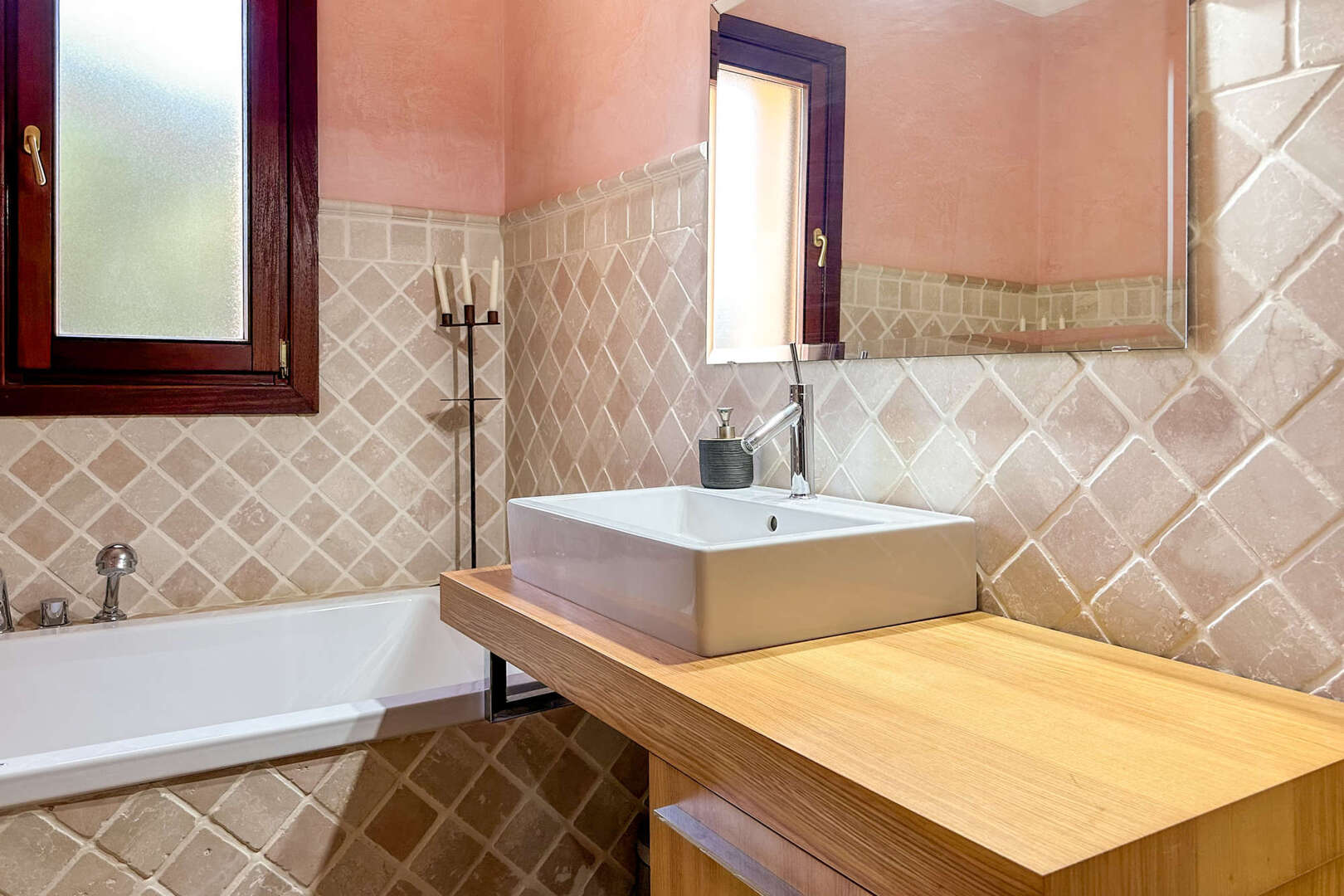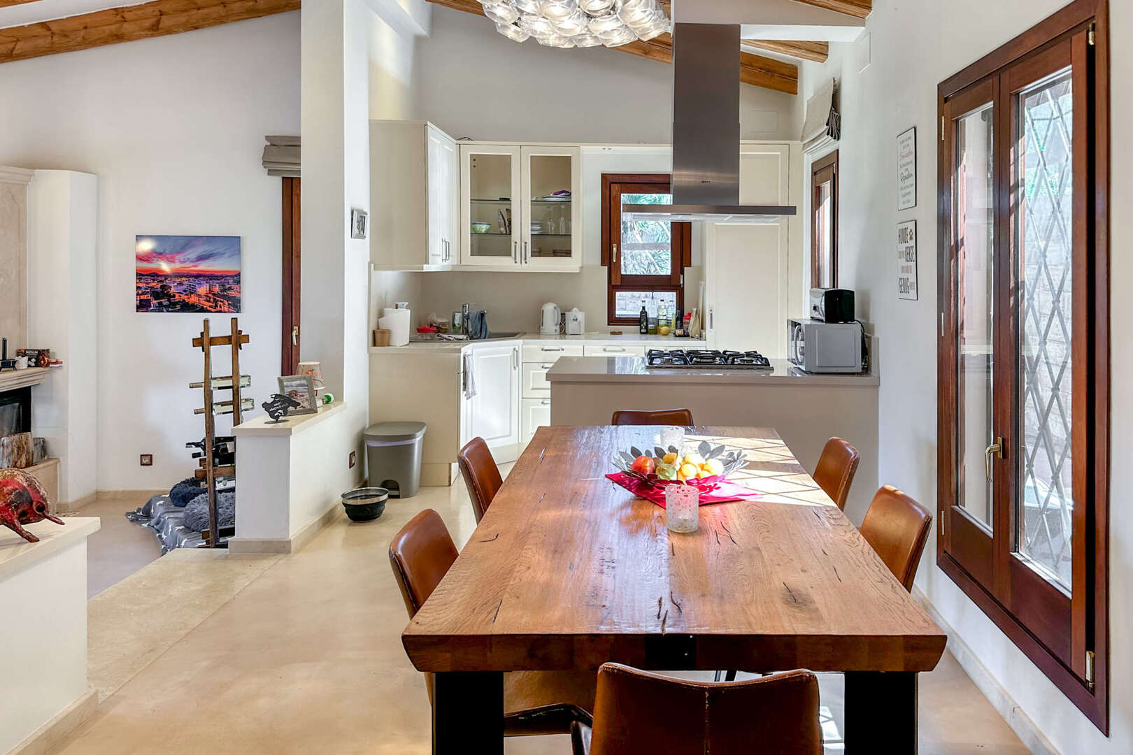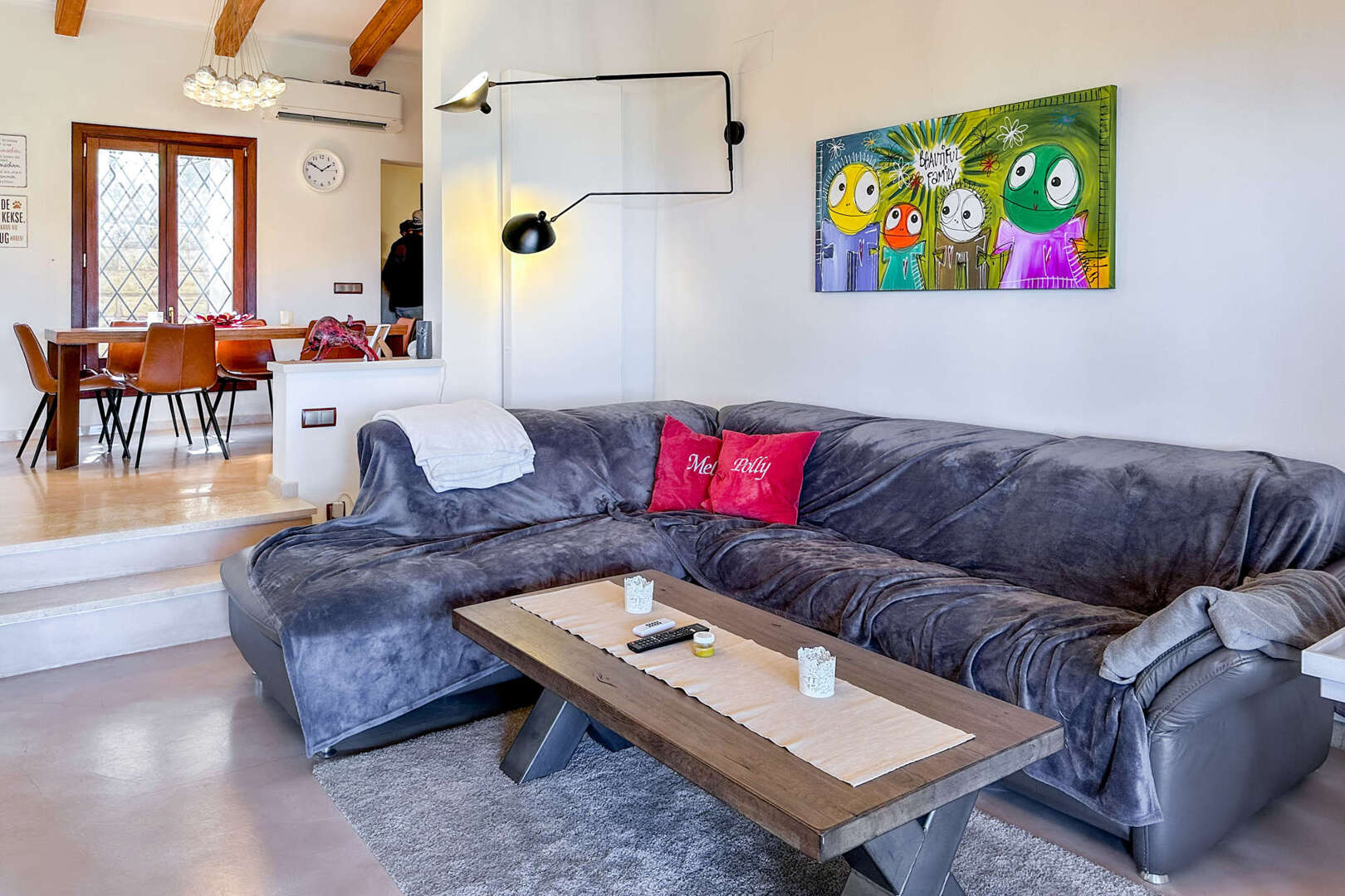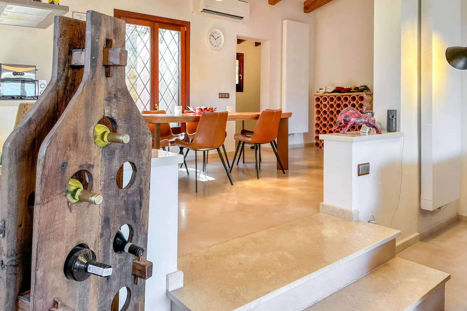 Esta impresionante finca se presenta en un estilo mallorquín particularmente hermoso con fantásticas vistas al mar y panorámicas. Esta propiedad especial se extiende sobre una enorme parcela de 27.000 m² y ofrece una superficie útil de 243 m². Materiales de alta calidad y un diseño bien pensado crean un ambiente acogedor en cada habitación. Esta exclusiva finca ofrece una distribución óptima de las habitaciones, dos amplios dormitorios, tres cuartos de baño, una cocina americana con comedor y un salón con una acogedora chimenea. Hay disponible una habitación más para hacer vida diáfana. Destacan las vistas únicas al mar, una sauna privada, un jacuzzi y la posibilidad de construir una piscina en la parcela. El permiso de obras necesario se concederá en breve. La finca está actualmente dividida en 2 unidades residenciales separadas, los planes para la fusión y la legalización han sido elaborados y ya presentados. Por lo tanto, el nuevo propietario todavía tiene la opción de incorporar sus propias ideas de diseño.