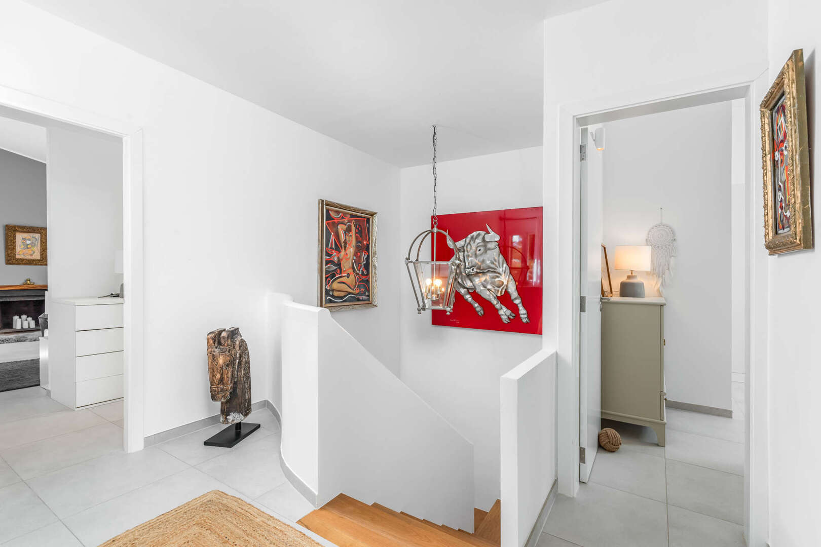 Destacan la elegante bodega, que proporciona a los amantes del vino momentos especiales de placer, y la sala de fitness privada, que permite realizar actividades deportivas directamente en la casa. La cocina abierta está perfectamente diseñada para disfrutar de experiencias culinarias y socializar. Moderna por dentro y rodeada de encanto natural por fuera, esta villa crea una imagen de conjunto armoniosa que se complementa con un equipamiento técnico de alta calidad.