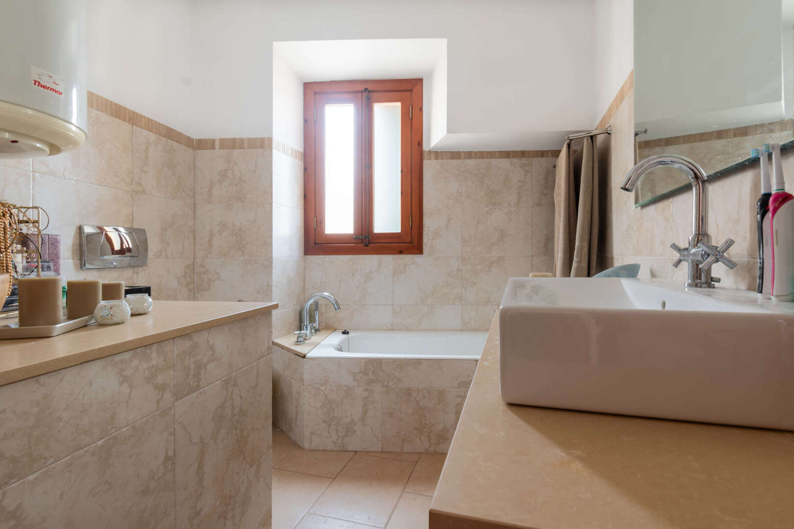 A bright daylight bathroom with bathtub and a small guest room or study await you on the upper floor. The master bedroom has its own en suite bathroom, which offers additional comfort. The hallway leads to the converted attic, which can be used in a variety of ways, whether as an additional bedroom, office or hobby room. Opposite the attic is the cozy walled-in roof terrace, which offers a wonderful view over the rooftops of Artá and is ideal for relaxing.