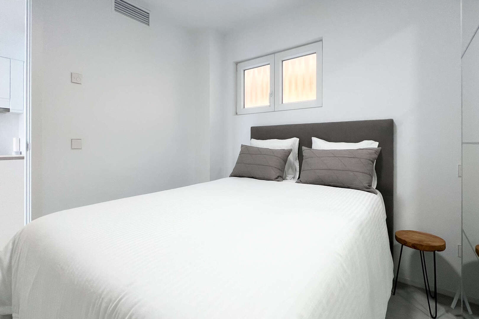 Este piso tiene 2 dormitorios dobles, 1 baño amplio con ducha, cocina americana equipada con barra. Dispone de plazas de parking en el exterior. Se puede vender amueblado.
