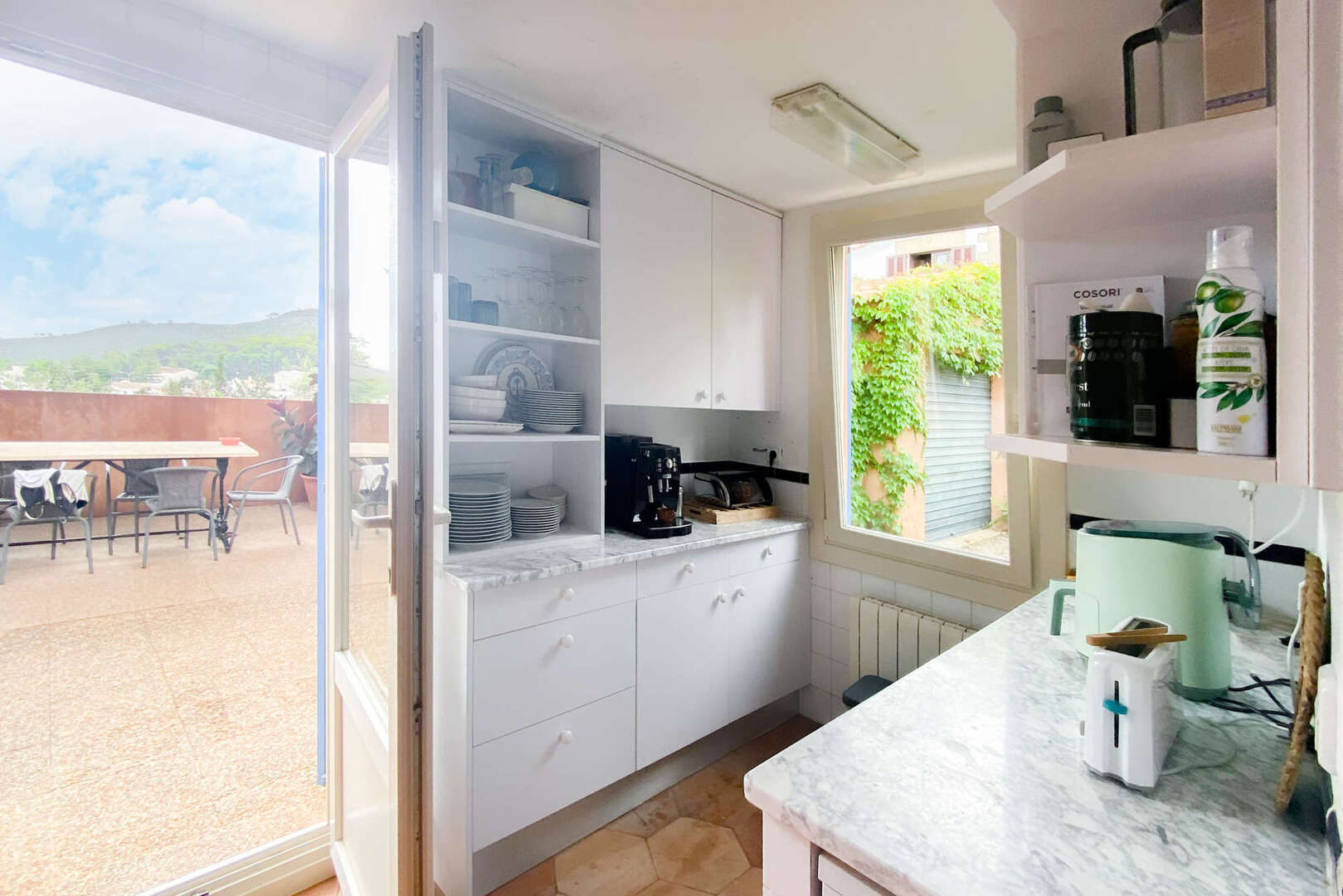 Desde la cocina se accede a la terraza y al jardín natural, que ofrece mucho espacio para socializar con la familia y los amigos.