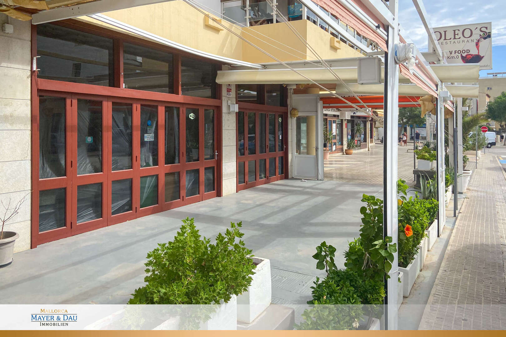 Desde aqui se accede a la terraza frontal con suficiente espacio para aprox. 80 comensales.
