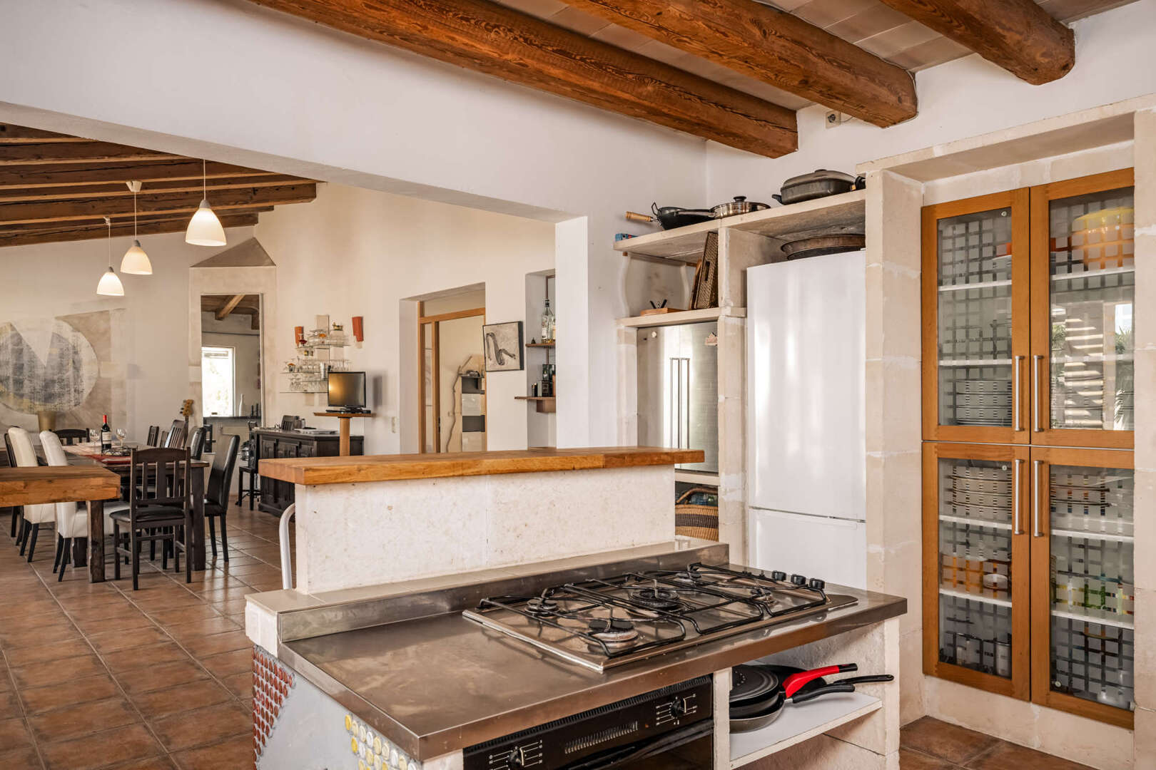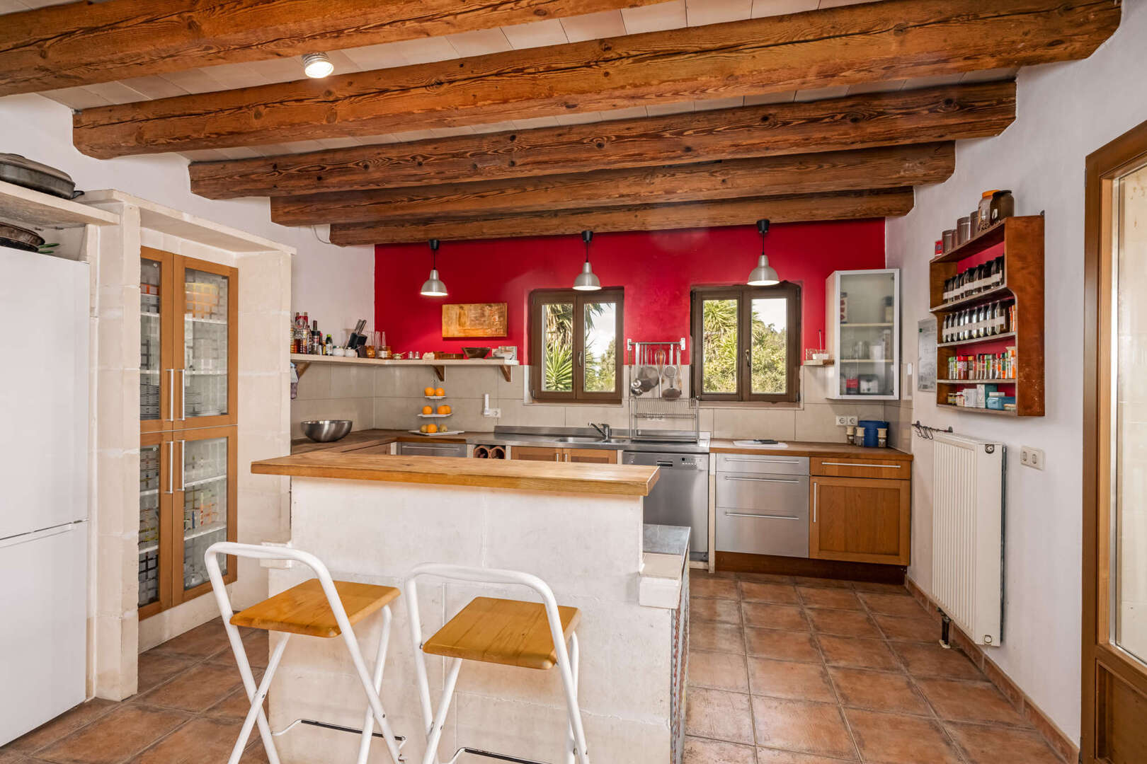 El salón principal consta de una amplia cocina abierta con comedor contiguo y acceso directo a varias terrazas. La zona exterior ofrece una piscina de 12 x 5 metros, zonas ajardinadas y una zona de barbacoa, y tiene un gran potencial para un rediseño exclusivo.